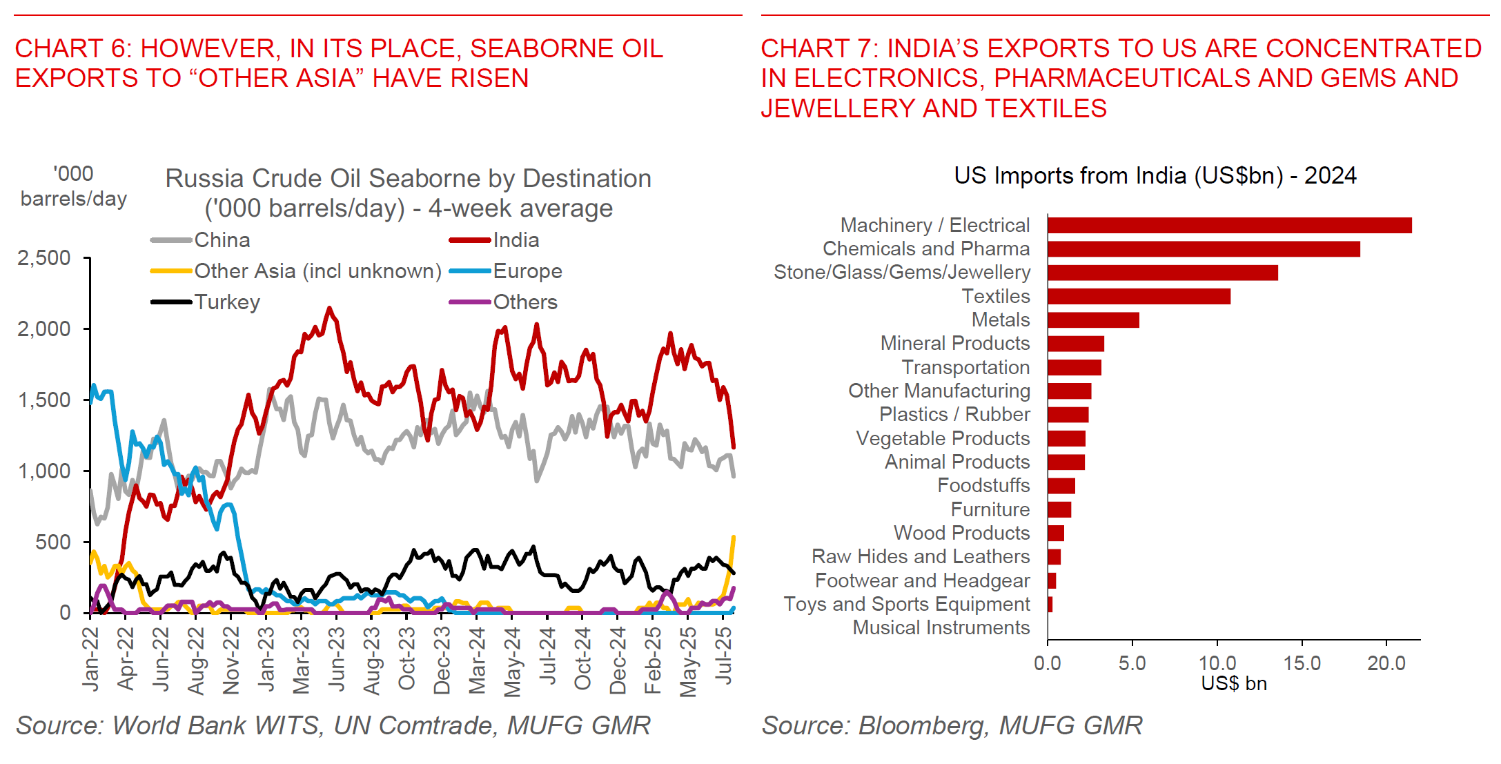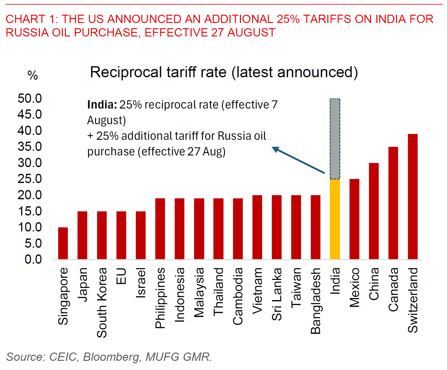 For India specifically, these 50% tariffs if they are eventually imposed on a sustained basis will be a significant negative for many labour intensive export sectors in India including textiles, gems and jewellery, toys, furniture, and many more. In addition, the negative impact to India’s GDP will likely much larger than the 0.3pp that we currently estimate (see India-US trade talks and tariffs – Delayed and denied?). At these announced rates, India’s tariffs would actually be higher than not just its export competitors such as Vietnam, but also China’s tariff rates across a whole range of products. This is even as we have highlighted India’s more domestic-oriented nature and current tariff exemptions on electronics and pharmaceuticals as mitigating factors. News overnight that Trump may impose a 100% tariff on semiconductors but impose 0% tariffs on companies such as Apple which shift production back to the US is a mixed message for India for now, given India’s current importance as an assembly hub for Apple for iPhones.