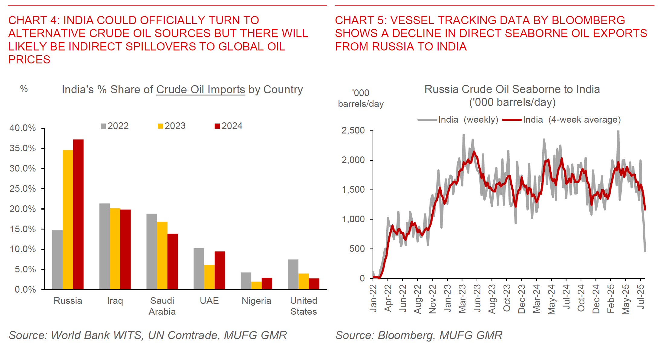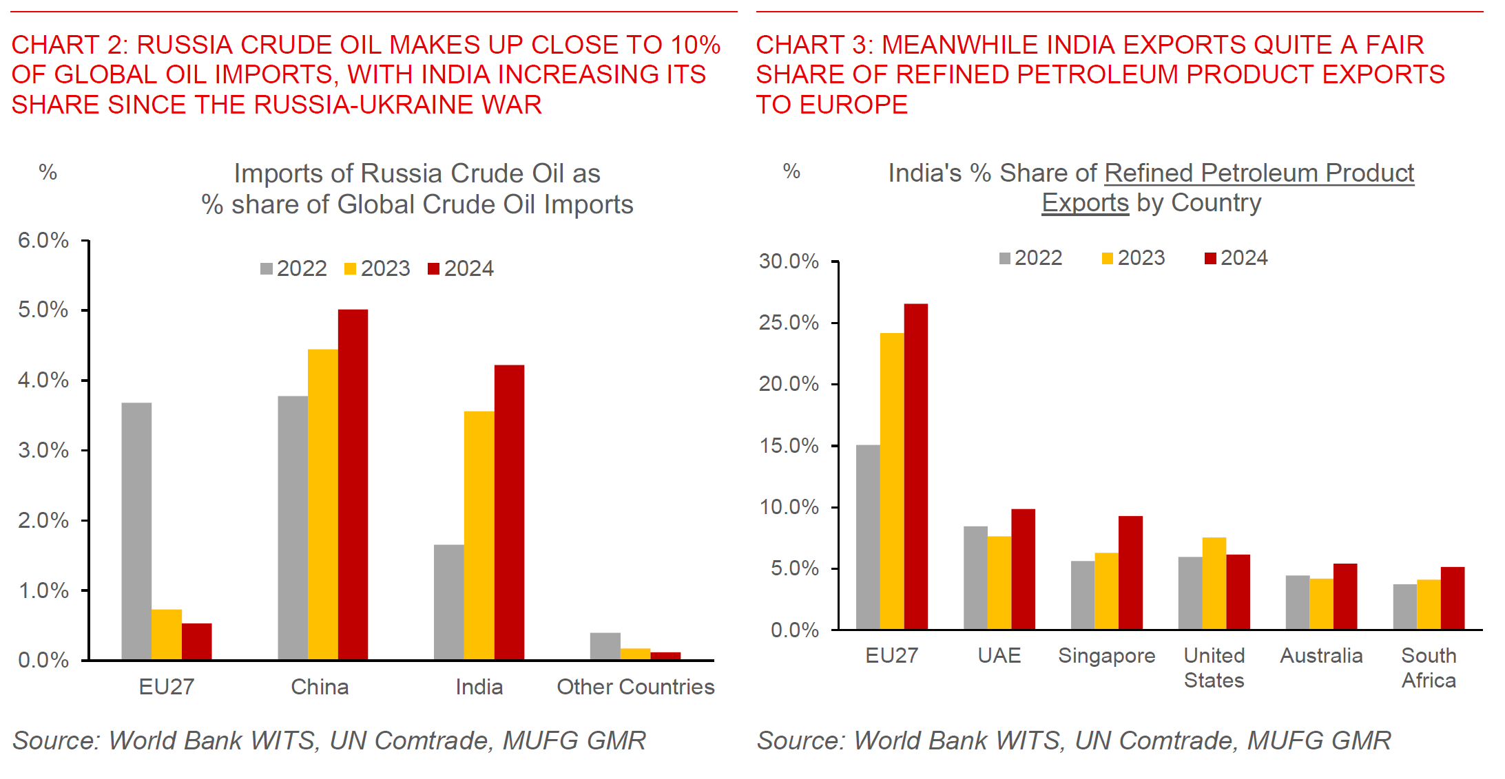 Nonetheless, the scale and importance of Russia’s oil production for global consumption and as such oil prices is not to be downplayed if there is a more material enforcement of Russia oil sanctions. Close to 10% of global crude oil imports coming from Russia, and India currently takes 42% of that global share today while processing quite a bit of refined petroleum products and ultimately sending to Europe. If India were forced to find alternative barrels of oil, the indirect spillover impact to global oil prices should not be under-estimated, even as we think this scenario is still highly unlikely and with OPEC+ in the process of increasing production quotas.
