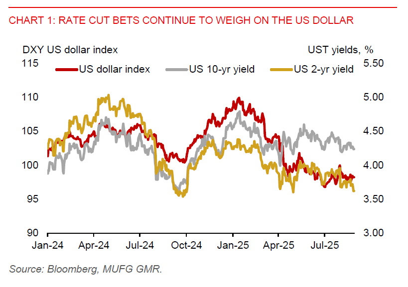 The US dollar held steady yesterday, but remains under pressure, weighed down by market expectations for Fed rate cuts and policy uncertainty. Fed Chair Powell’s dovish pivot at Jackson Hole last week has continued to drive a decline in 2-year yields. However, US long-end yields have stayed elevated, not due to growth optimism but concerns about fiscal sustainability, tariff related inflation risks, and questions surrounding the Fed’s independence. Notably, President Trump’s public criticism of the Fed and his stated intention to fire Fed Governor Lisa Cook have raised questions about the central bank’s autonomy. In a recent speech, New York Fed President John Williams has emphasized that maintaining the Fed’s independence is essential.