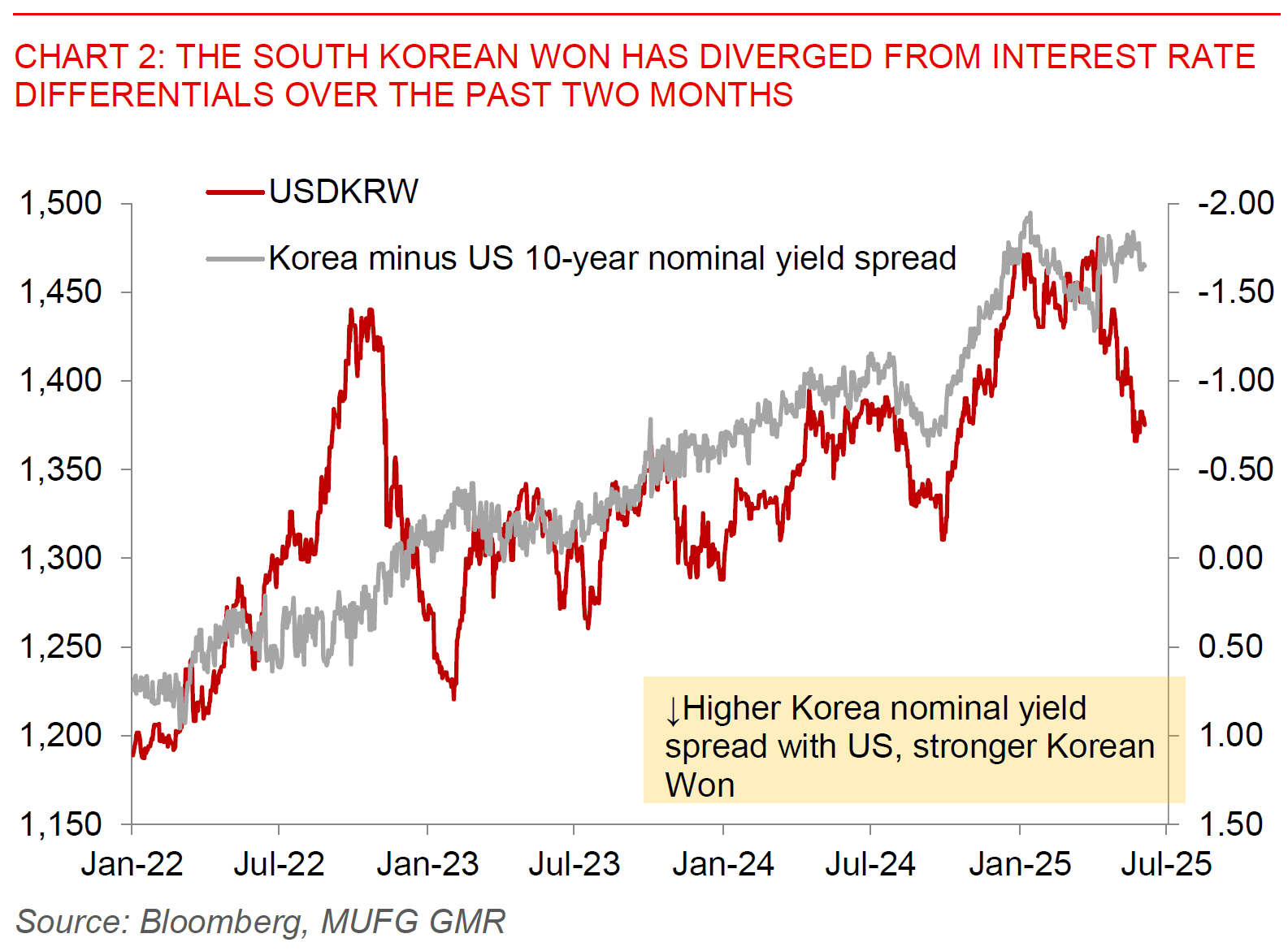 While a win by Lee and DP should be good for the South Korean won given the expectation for additional fiscal stimulus coupled with lower policy uncertainty, not all things are equal in practice. We still think the dominant factor for KRW will be the negative impact of tariffs and also the underlying structural weakness of South Korea’s economy including its soft property market and weak domestic demand. As such, we are neutral on KRW and forecast USD/KRW at 1400 by 1Q2026 (see KRW – will it catch up to TWD’s recent gain).