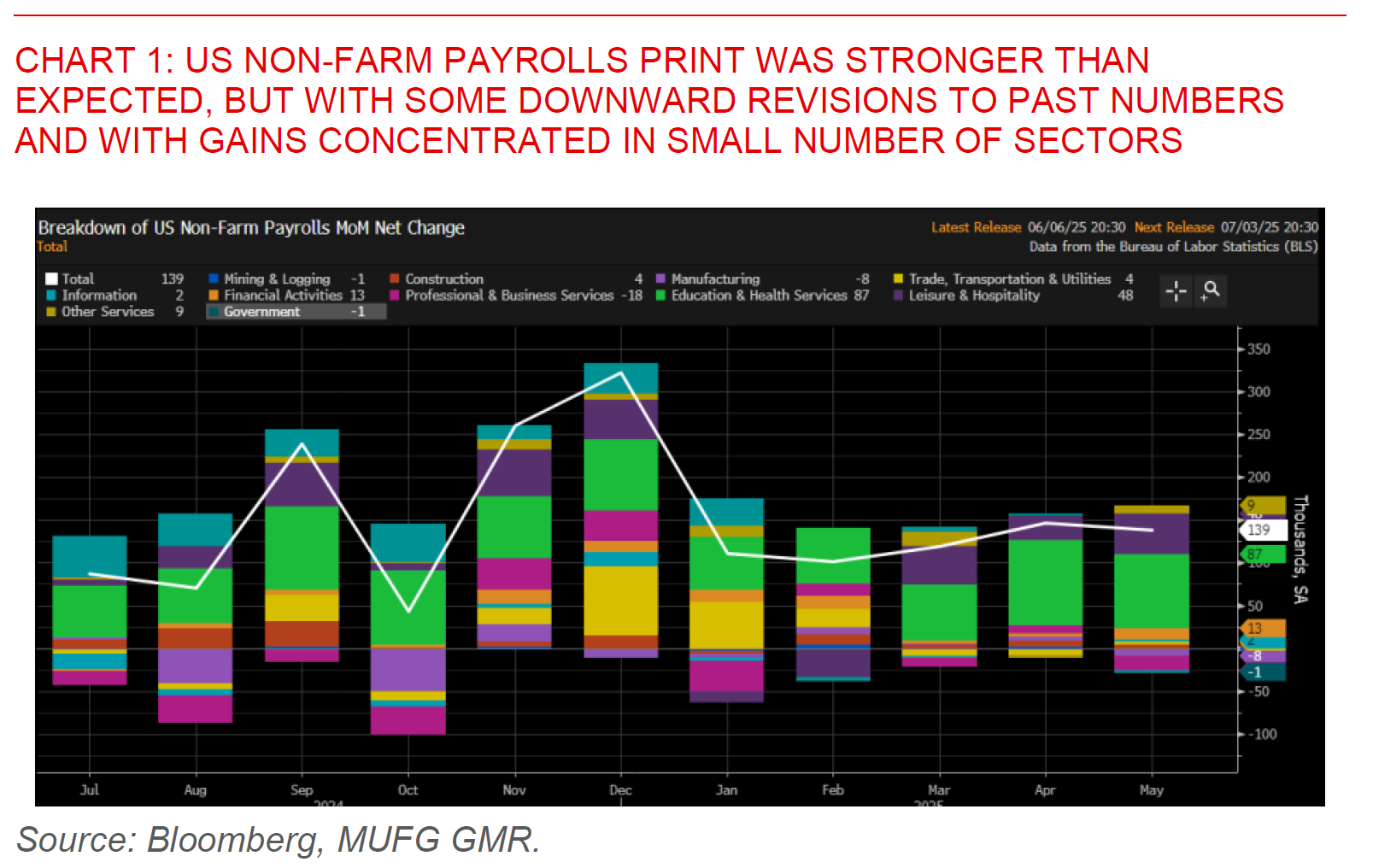 The US Dollar strengthened over the weekend and Asia currencies generally softened, as US non-farm payrolls came in stronger than expected at 135k in May, and allaying some initial fears of a much sharper slowdown in the US labour market given alternative measures such as the ADP prints. That said, the details continue to point to a moderation in the US labour market, with quite a meaningful downward revision in past NFP estimates, and the vast bulk of the employment gains were narrow concentrated in leisure and hospitality coupled with education and health services.