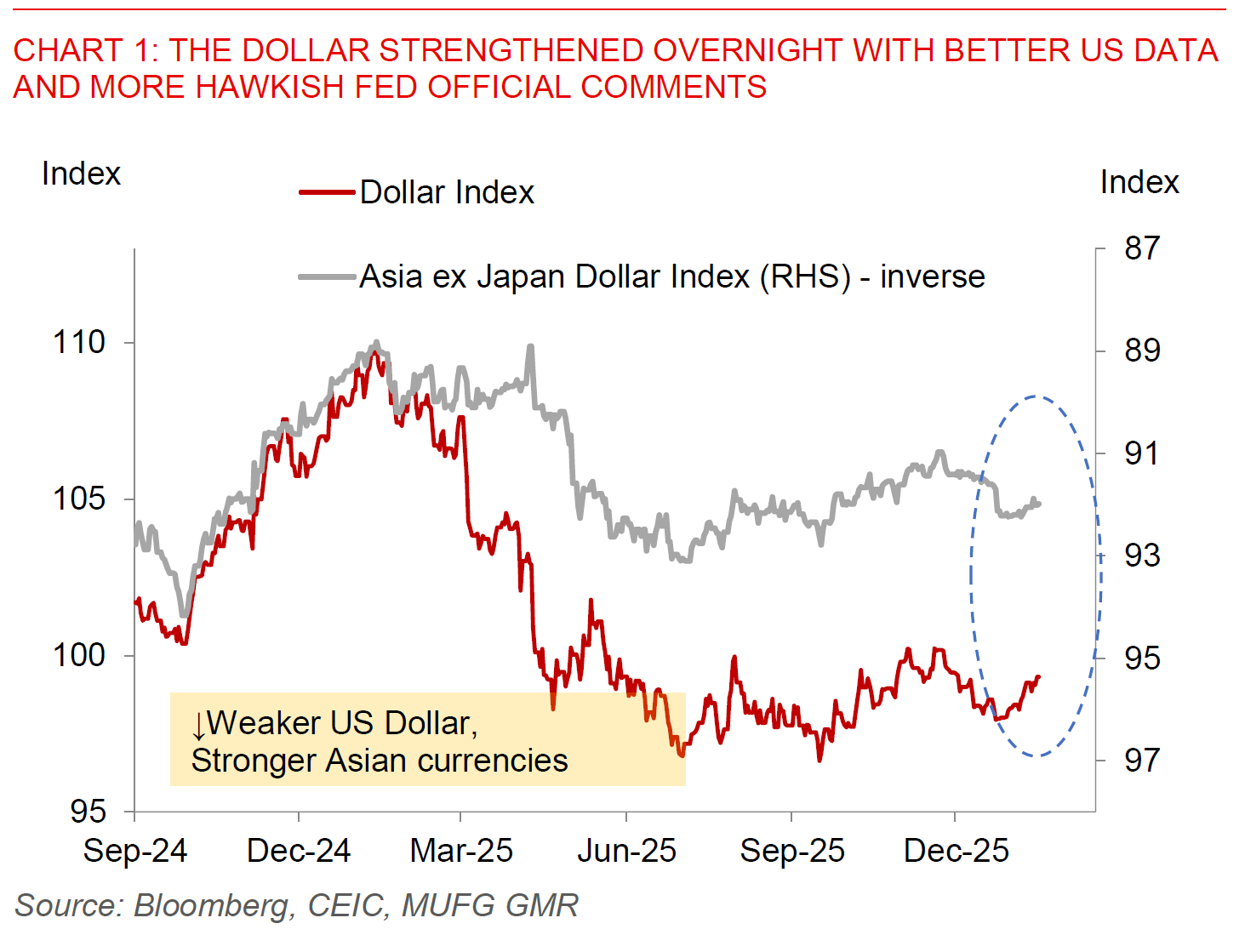 Meanwhile, the Japanese Yen and South Korean won have been weak so far –driven by different factors but of course both are highly correlated currencies. For the Japanese Yen, uncertainty around a possible snap election continues to dominate and with that the path for the extent of expansionary fiscal and reflationary policies. Yesterday, Japan’s largest opposition party the Constitutional Democratic Party of Japan and New Komeito agreed to form a new party, adding some risk to PM Sanae Takaichi’s anticipated calling for a snap election later this month and possibly on 8 Feb 2026. The weak Japanese Yen is causing some concerns from the Bank of Japan based on latest news, with BOJ officials seeing the JPY as a factor with greater influence on inflation moving forward.