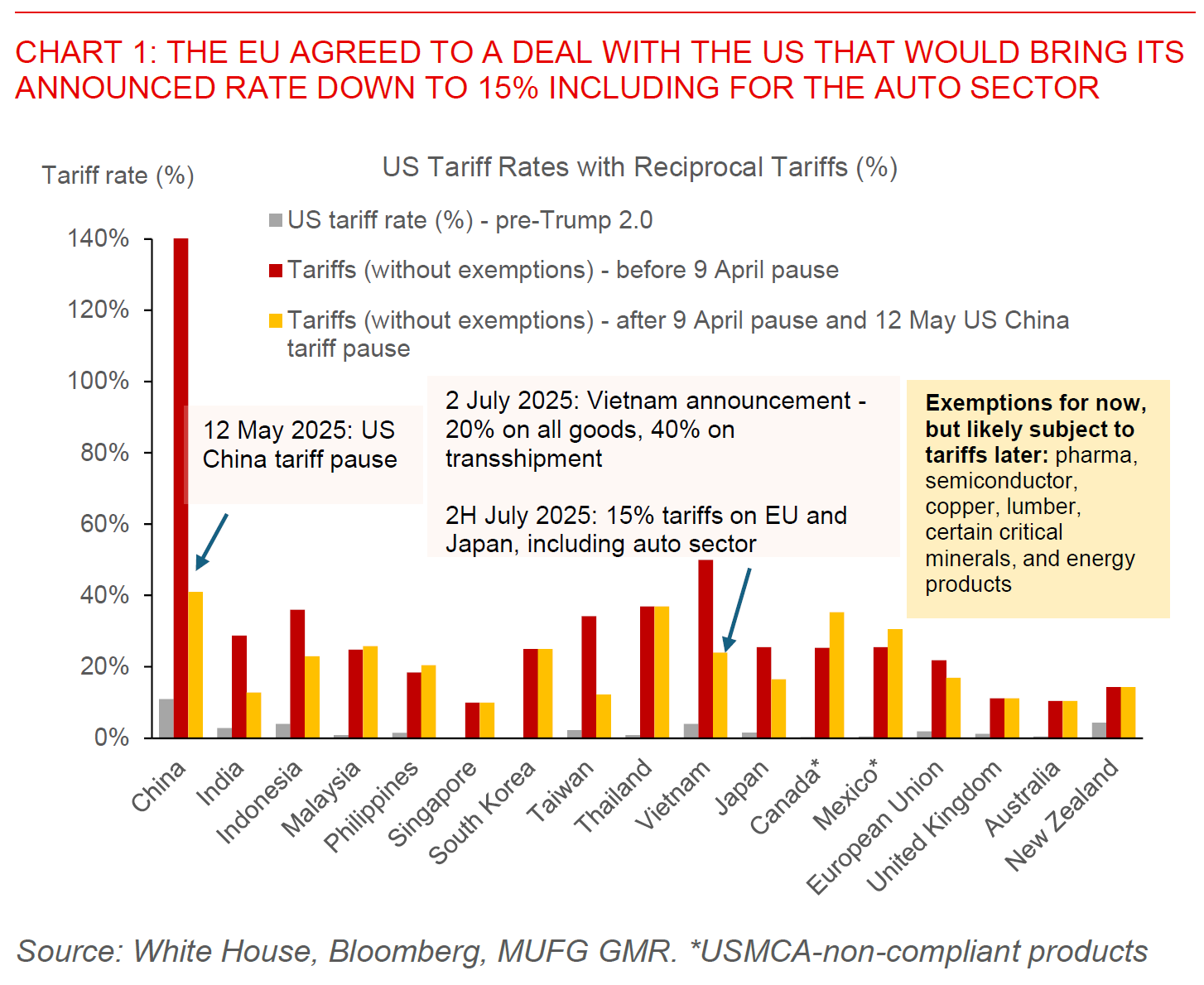 The US and European Union agreed on a trade deal over the weekend, which will see the EU face 15% on most of its exports including automobiles. In return, Trump said that the EU has agreed to purchase US$750bn in American energy products, invest US$600bn in the US on top of existing purchases, open up the EU markets at zero tariffs, and purchase “vast amounts” of military equipment. Nonetheless, as what we have seen in the other trade deals including with Japan, the lack of a formal agreement can easily lead to different interpretations. For one, European Commission President Ursula von der Leyen said that a 15% tariff rate has been agreed on pharmaceuticals, irrespective of upcoming Section 232 sectoral tariffs on the sector, with the investment commitments by the EU key as well in clinching this. This was contradicted by Trump who said that the deal would not include pharmaceuticals. Second, the EU and the US also diverged on tariffs on steel and aluminum tariffs, with the US saying metal tariffs will be cut and quota system will be put in place, but Trump saying 50% tariffs will remain in place. Meanwhile, US and China will meet in Stockholm on 28 July, with SCMP reporting that both are expected to agree to extend the truce by 90 days.