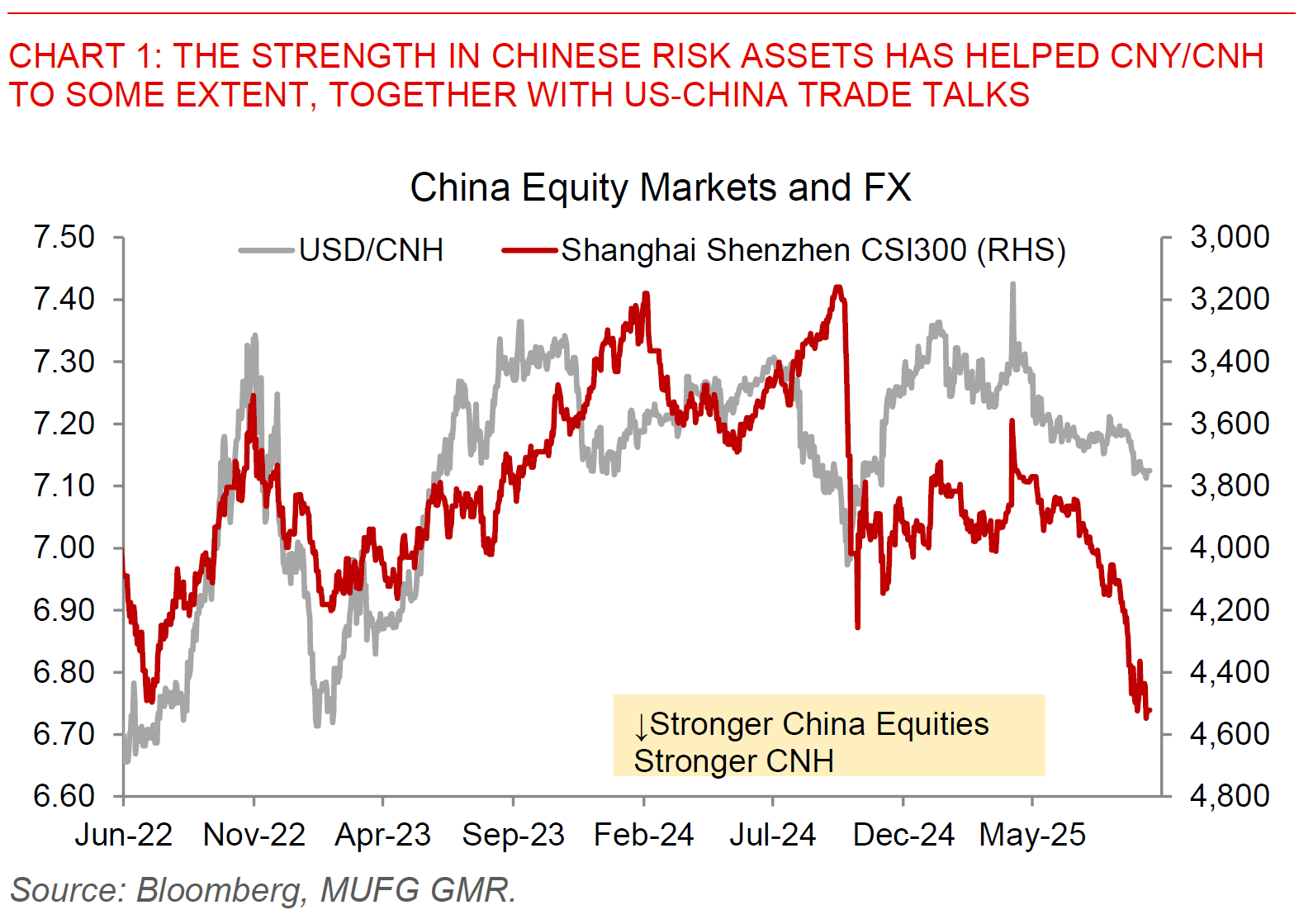 US and Chinese representatives held high-level talks in Madrid, as diplomacy between the world’s two biggest economies intensifies. Bloomberg news reported that national securities issues, and the status of Bytedance’s TikTok were part of the discussions, with the discussions expectation to lay the groundwork for a possible meeting between President Trump and President Xi as soon as October during the South Korea APEC summit. This talks are happening even as China launched two investigations targeting the US semiconductor industry, including an anti-dumping probe related to certain American-made analog IC chips, shortly after the US added 23 more China-based companies to its entity list. Amid these discussions between the US and China, markets will also focus on the monthly macro data out from China later this morning. The consensus is expecting some marginal slowing industrial production coupled with a slight pickup in retail sales in August, with the overall macro picture likely one still of a subdued economy and soft underlying momentum hampered by the weakness in China’s property sector. The broader picture is still one of strong Chinese equity market sentiment offsetting the soft macro numbers, helping the CNY to some extent.