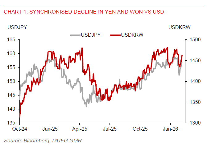 Asian currencies were slightly weaker against the USD in yesterday’s session. In particular, yen weakness (-0.7%) and higher oil prices likely created negative spillovers across the region, with the Korean won notably leading losses, falling 0.8% against the US dollar.