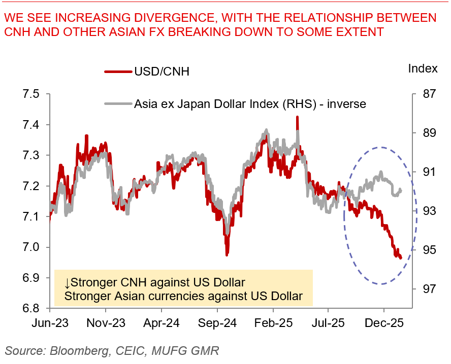 We see increasing divergence, with the relationship between CNH and other Asian FX breaking down to some extent