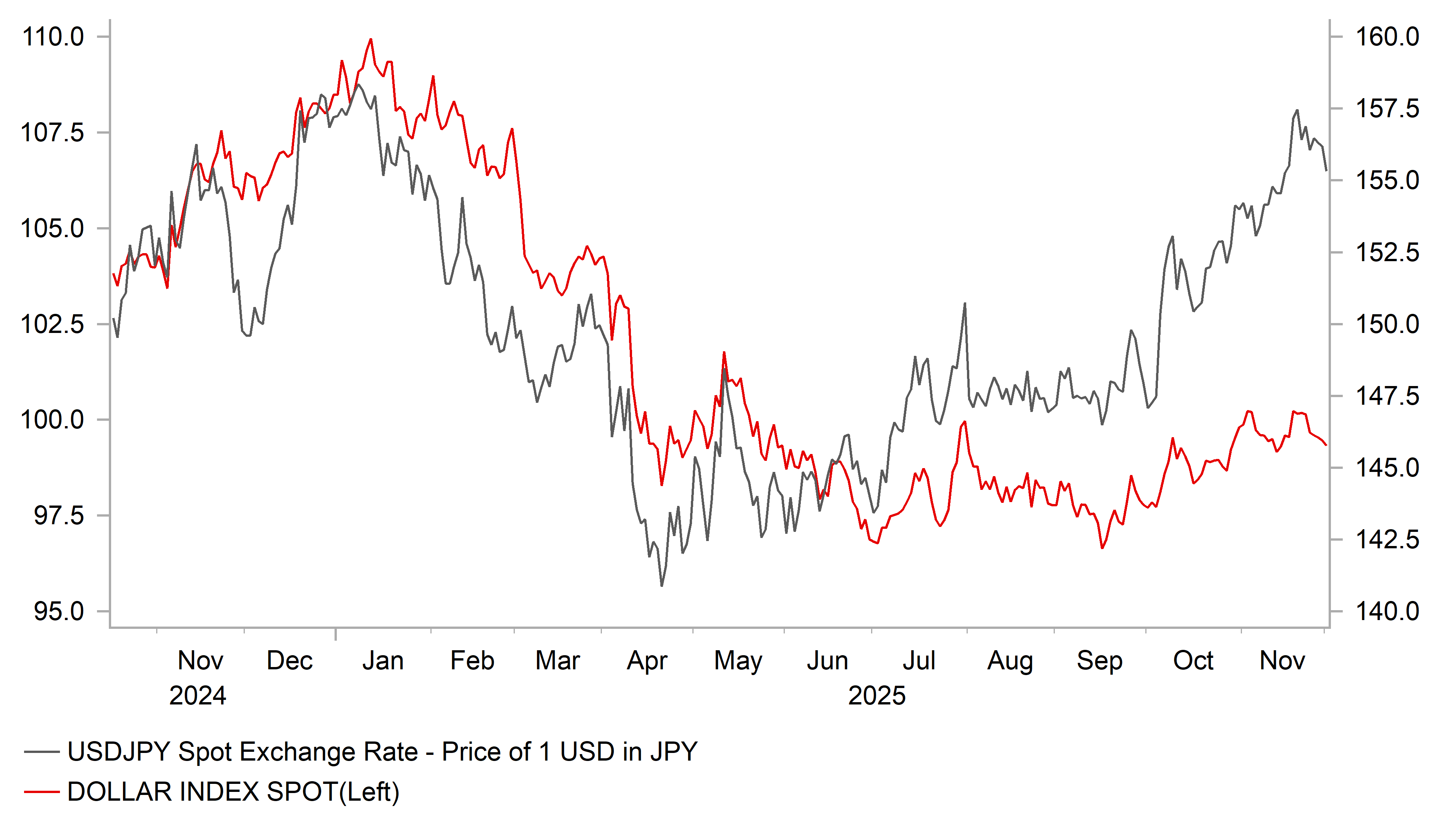 The correction lower for USD/JPY over the past week has been encouraged as well by the dovish repricing of Fed rate cut expectations. After failing to sustain levels above the 100.00-level for the second time in November, the dollar index has fallen to a low of 99.317 overnight. The US rate market has now fully priced in another 25bps rate cut at the 10th December FOMC meeting. The main driver remains comments at the end of last month from New York Fed President Williams who stated he still sees room for a cut this month. At the same time, downward pressure on short-term US yields has been supported by building speculation over who will become the next Fed Chair. President Trump stated yesterday that he has decided on his pick to be the next Fed Chair and that “we’ll be announcing it”. The exact timing of the announcement remains unclear but it could come as soon as this week. US Treasury Secretary Scott Bessent previously indicated it would come before Christmas.