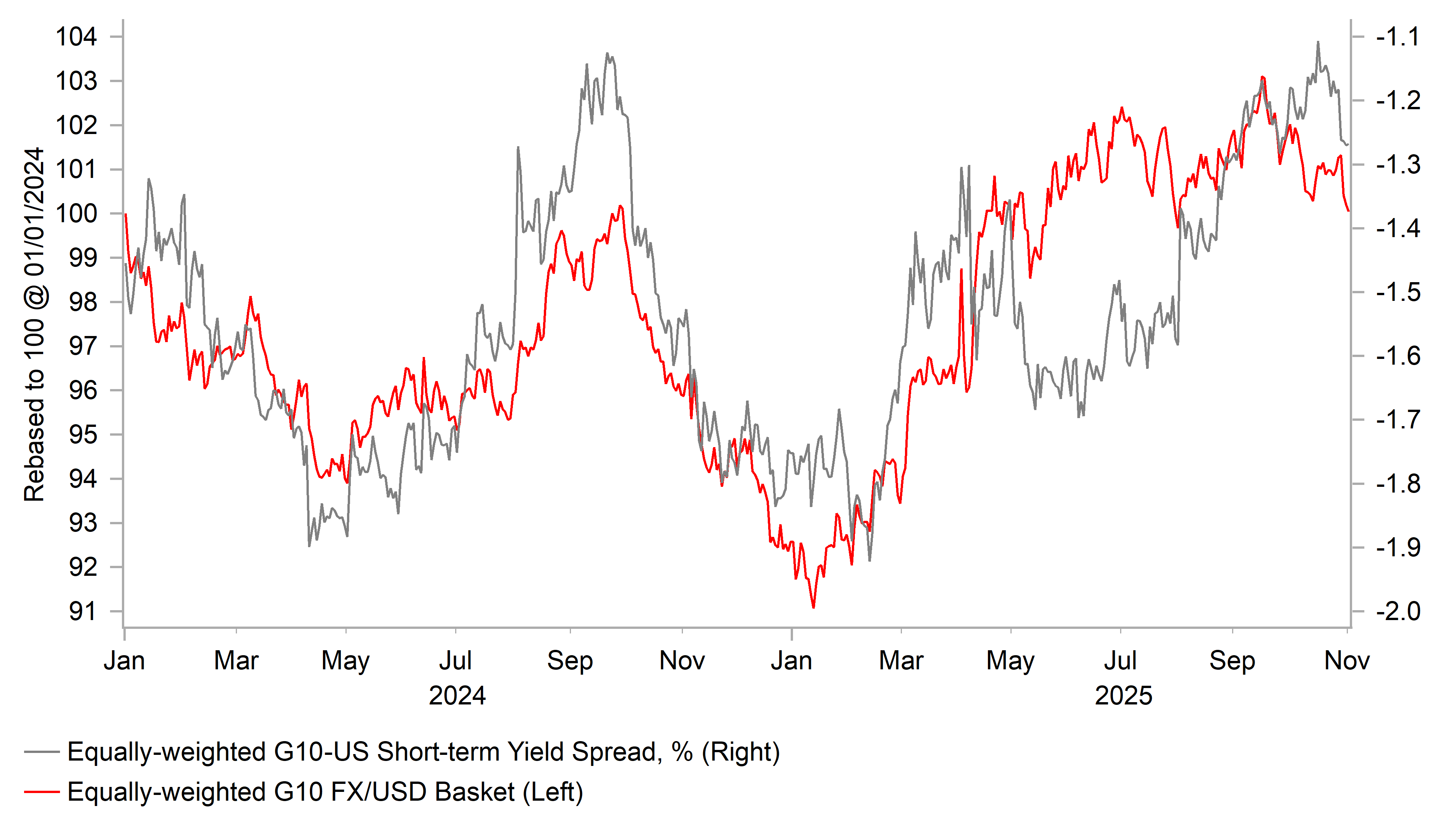 In contrast, the Canadian dollar has been one of the best performing G10 currencies over the last couple of weeks alongside the US dollar. USD/CAD attempted and failed to break back below the 1.4000-level after the BoC signalled that they are likely to pause their rate cut cycle in the near-term. The impact from the hawkish BoC guidance was then quickly offset by hawkish communication from Fed Chair Powell last week when he pushed back more strongly against market expectations for another 25bps Fed rate cut in December.