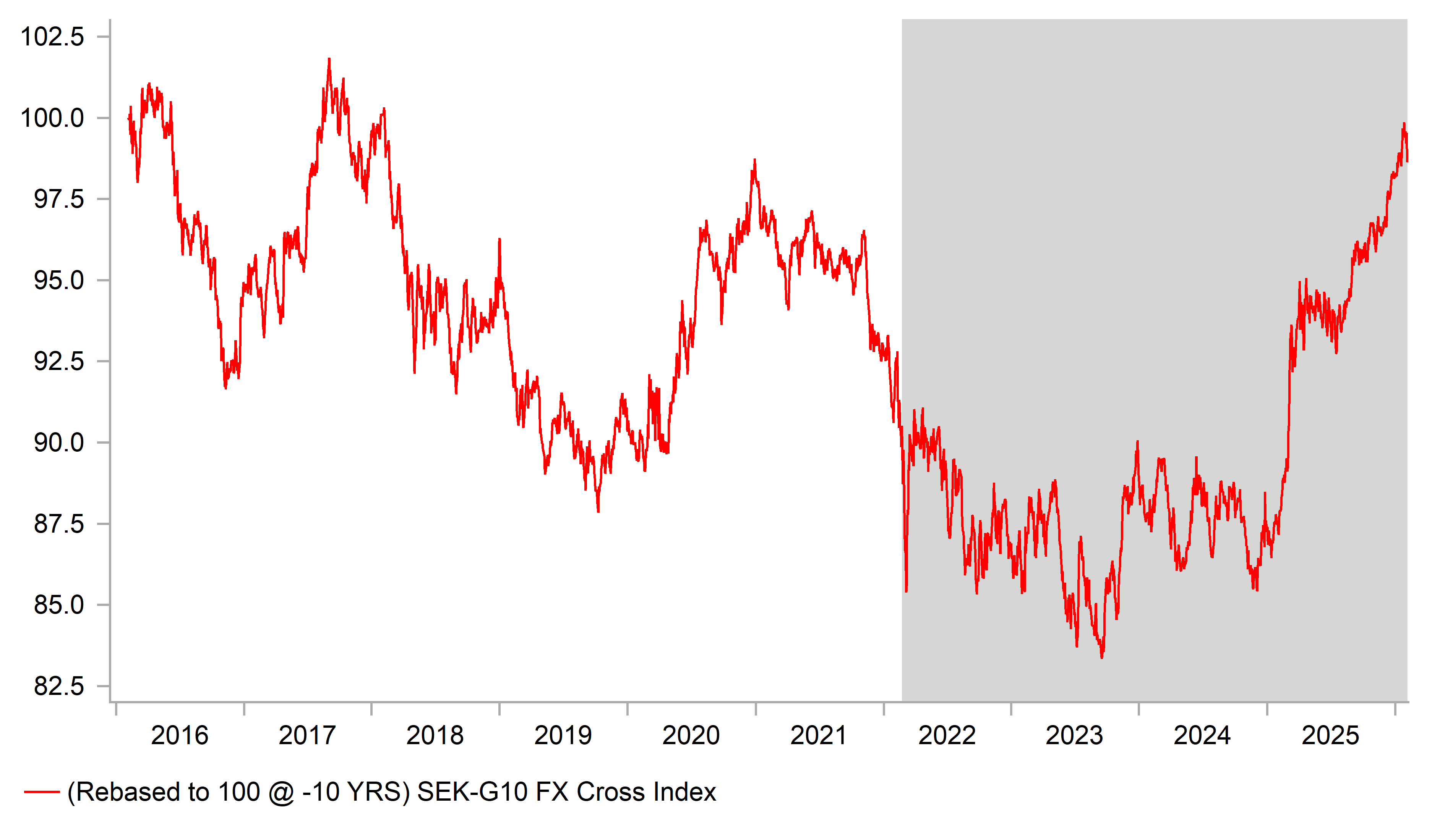 The dovish comments from the Deputy Governor have encouraged the Swedish rate market to price back in a higher likelihood of further rate cuts this year, and triggered a sharp correction lower for the krona. EUR/SEK jumped back above the 10.600-level. Overall, recent communication from the Riksbank still indicates that they are happy to leave rates on hold this year but the risk of further Riksbank easing if the krona continues to strengthen could help dampen further upside especially after the Deputy Governor indicated he is willing to vote for a cut as soon as the next policy meeting.