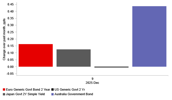 The hawkish repricing of rate expectations outside of Japan is putting a dampener on support for the yen from expectations that the BoJ will resume gradual rate hikes this month. Governor Ueda spoke overnight in parliament and stated that the BoJ will make the appropriate decision at the December meeting while Prime Minister Takaichi reiterated the specifics of monetary policy should be left to the BoJ. Governor Ueda did voice some concern that the recent pace of long-term yield movements is somewhat fast, and reiterated that they remain prepared to increase bond buys in exceptional cases to stabilize the JGB market if required. The sharp sell-off at the long end of the JGB curve reflecting fiscal risks continues to weigh on the yen. It is making it harder for Japanese policymakers to derail the yen weakening trend that has been in place since Sanae Takaichi won the LDP leadership election and became prime minister. She did warn overnight that it is vital that FX moves stably and reflects fundamentals. Adding they will take appropriate action on excessive moves. The risk of direct intervention will increase if the yen continues to weaken after a BoJ rate hike.