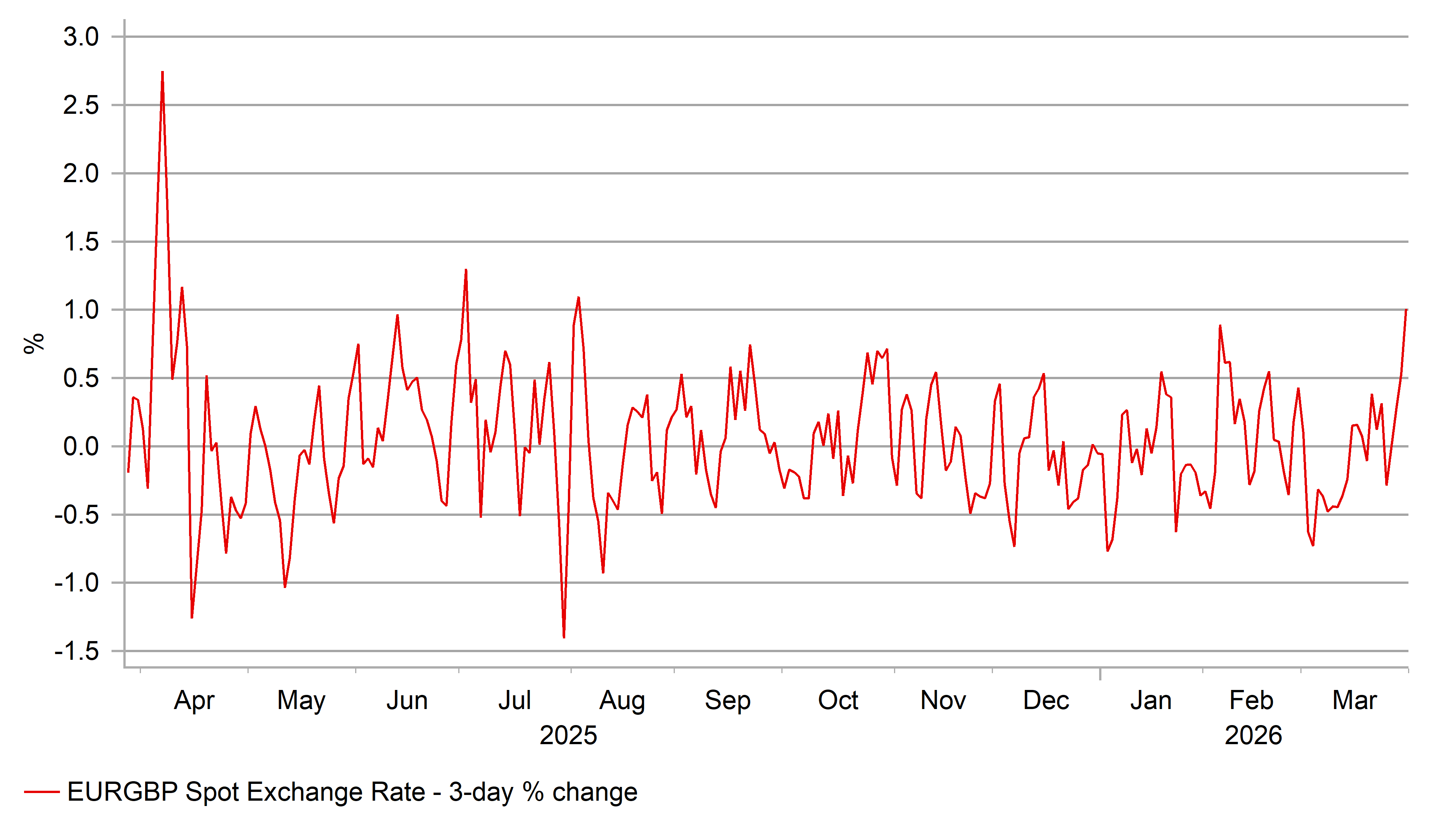 3-DAY % CHANGE IN EUR/GBP THE LARGEST SINCE AUGUST LAST YEAR