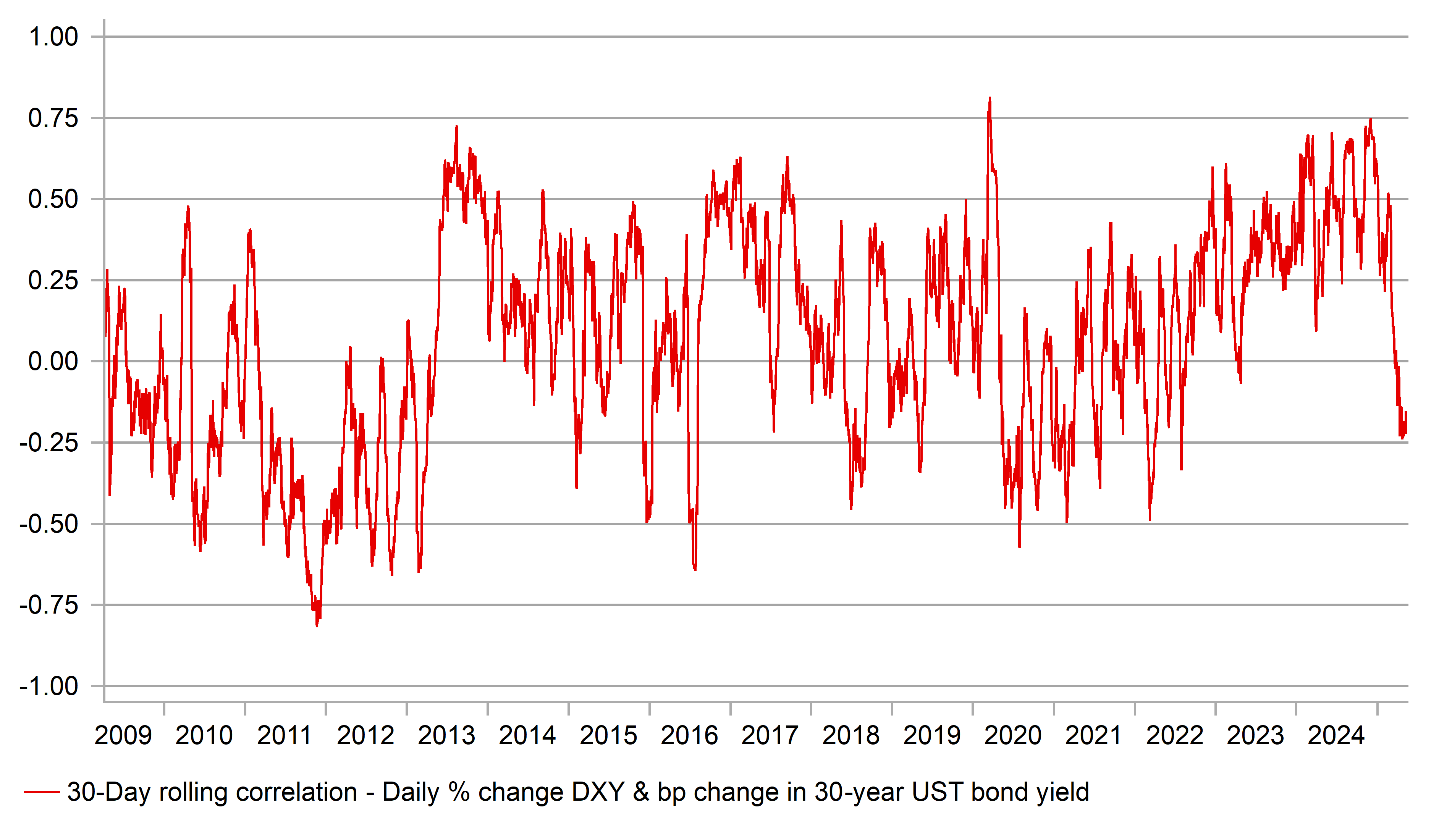 30YR UST YIELD MOVES CORRELATING NEGATIVELY ON A 30-DAY PERIOD WITH THE US DOLLAR