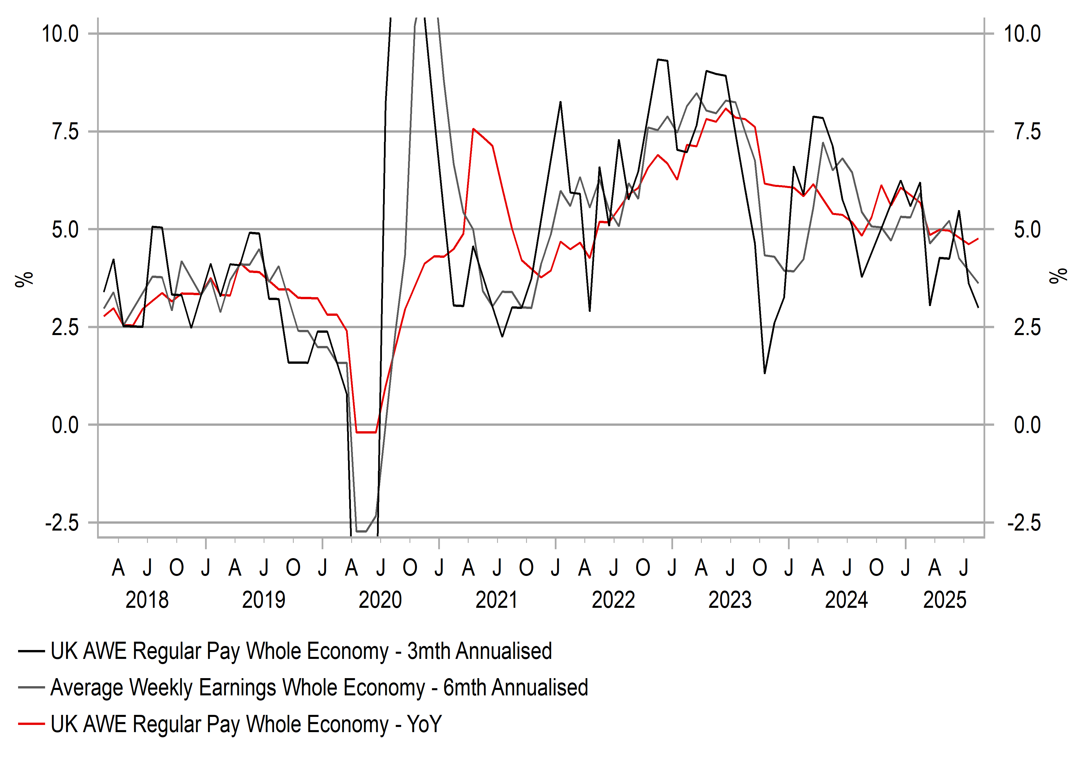 3MTH & 6MTH ANNUALISED WHOLE ECONOMY REGULAR PAY CONTINUES TO DECELERATE CLOSE TO PRE-COVID LEVELS