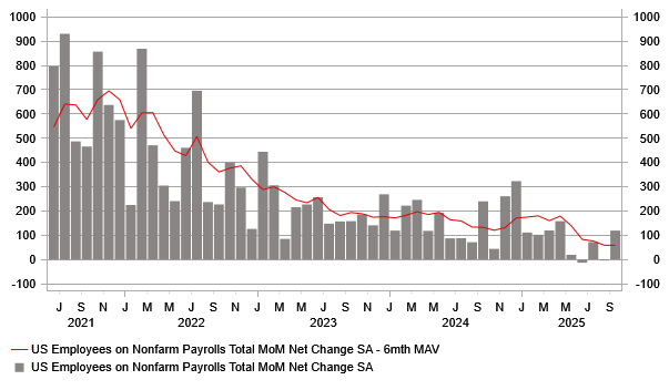 The US dollar has continued to trade on a weaker footing ahead of the release today of the delayed nonfarm payrolls data from November and October. The report will provide important information on the health of the US labour market in the run up to and during the record US government shutdown. Short-term US yields and the US dollar have been correcting lower following last week’s FOMC meeting at which the Fed left the door open to further rate cuts next year, although did signal that they are planning to leave rates on hold at the start of next year depending on the incoming economic data. Today’s nonfarm payrolls report could materially alter current market expectations for the Fed to leave rates on hold at the next FOMC meeting in January. The Fed will also be able to see the nonfarm payrolls report for December at the start of next year before deciding whether to leave rates on hold in January. The Fed may attach more weight to the December NFP report given it should be less impacted by the recent US government shutdown than today’s report.