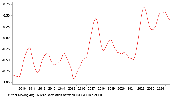 POSITIVE CORRELATION BETWEEN PRICE OF OIL & USD