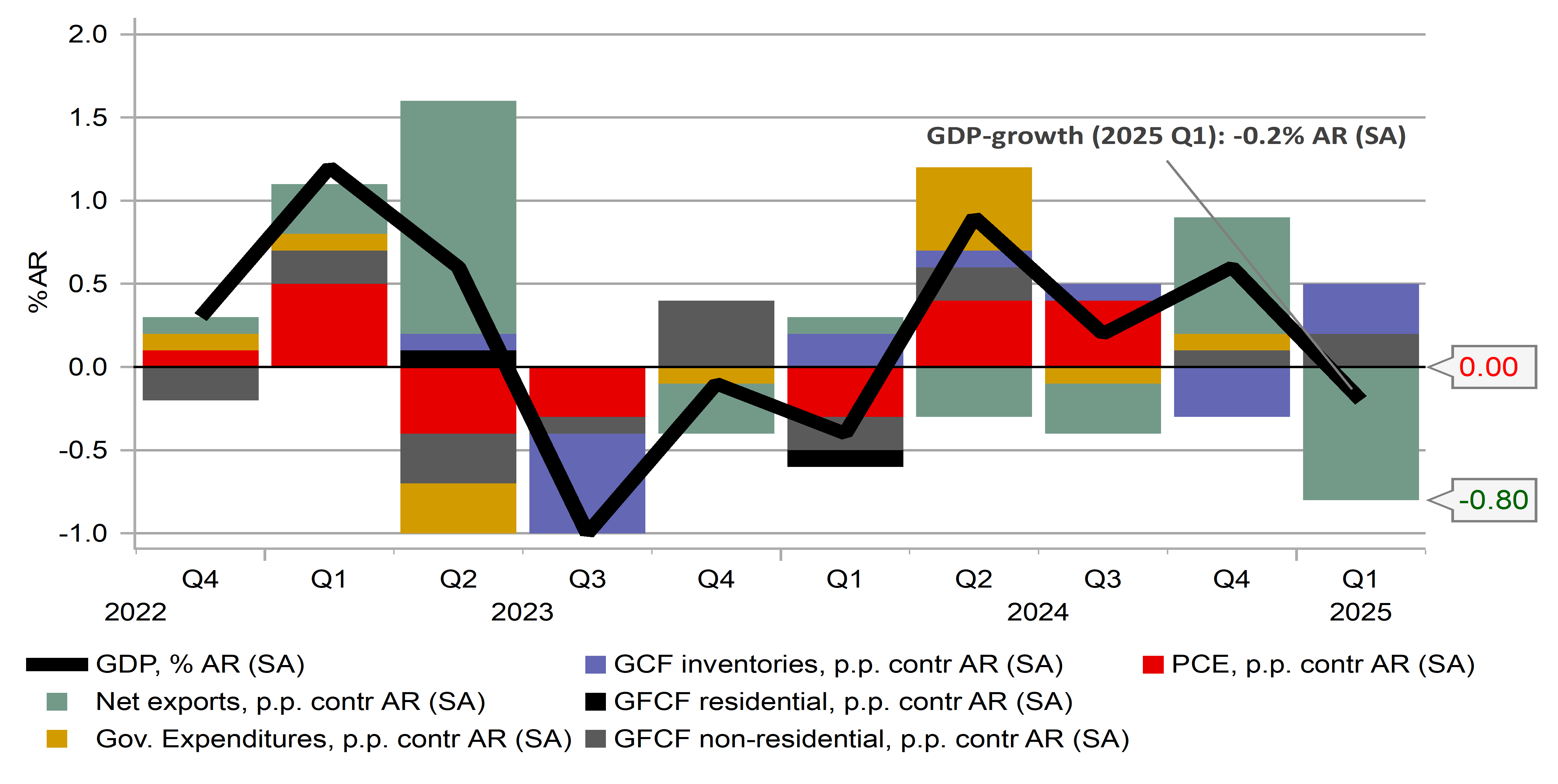 It will be these developments that will be more important for the direction of USD/JPY and given our view of weakening economic growth in the US we continue to expect USD/JPY to decline. The gain we had from the low last week to Monday’s high has now retraced by over 50% and today’s weaker than expected GDP data for Q1 from Japan is unlikely to have much impact. Real GDP contracted by 0.7% Q/Q on a SAAR basis following a 2.4% gain in Q4 last year. There was no rush to export ahead of tariffs with exports declining 0.6% Q/Q while imports jumped 2.9%. The household sector also remains weak with private consumption flat in the quarter. The cost of living crisis remains an issue for Japanese households.