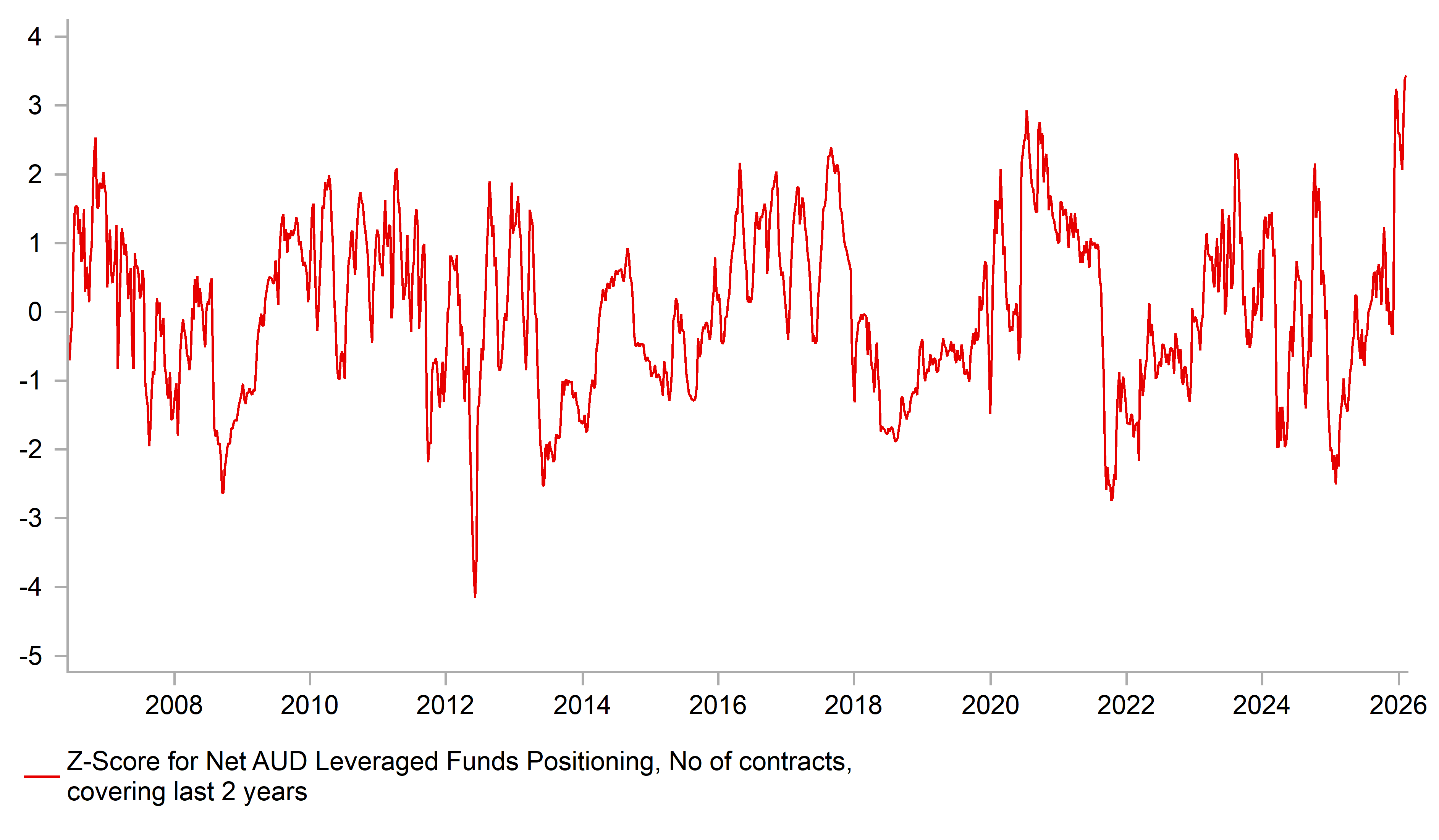 AUD LONGS Z-SCORE INDICATES MOST OVER-STRETCHED POSIONING ON RECORD IN DATA BACK TO 2006