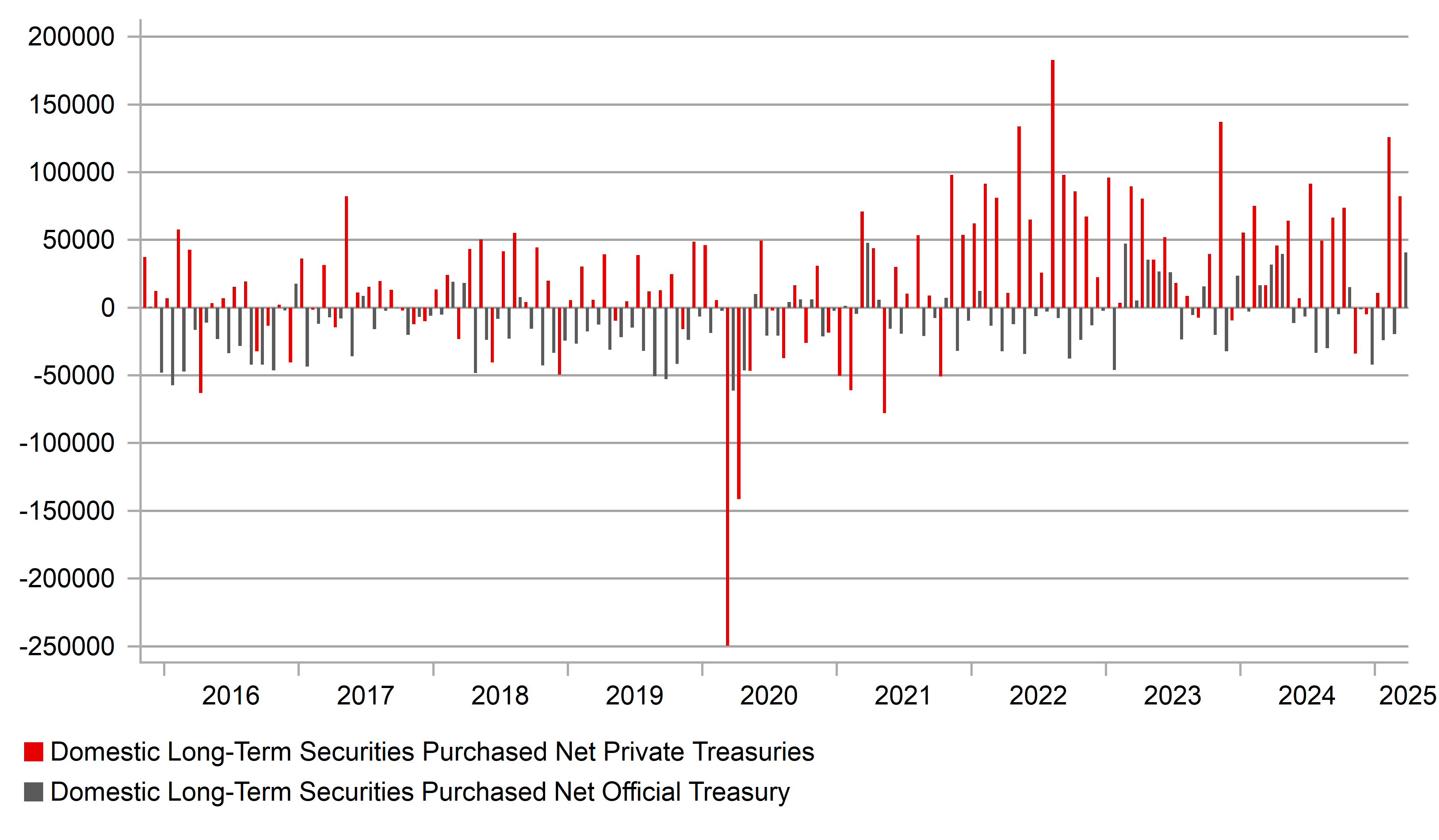 In our FX Weekly on Friday (here) we highlighted the fact that while there has been evidence of central bank selling of UST bonds both in recent months and further back over a number of years, this selling was more than offset by huge buying by private foreign investors. The TIC data for March was released on Friday evening and the data showed little evidence overall of foreign investor flight from the US. Of course it was the price action in April that fuelled fears of foreign investor flight, but certainly in the month ahead of that there was limited signs of any loss of confidence in US assets – and this covered the period of Trump announcing tariffs on China twice – at the start of Feb and March – and the announcement of steel and aluminium in Feb and on autos in late March.