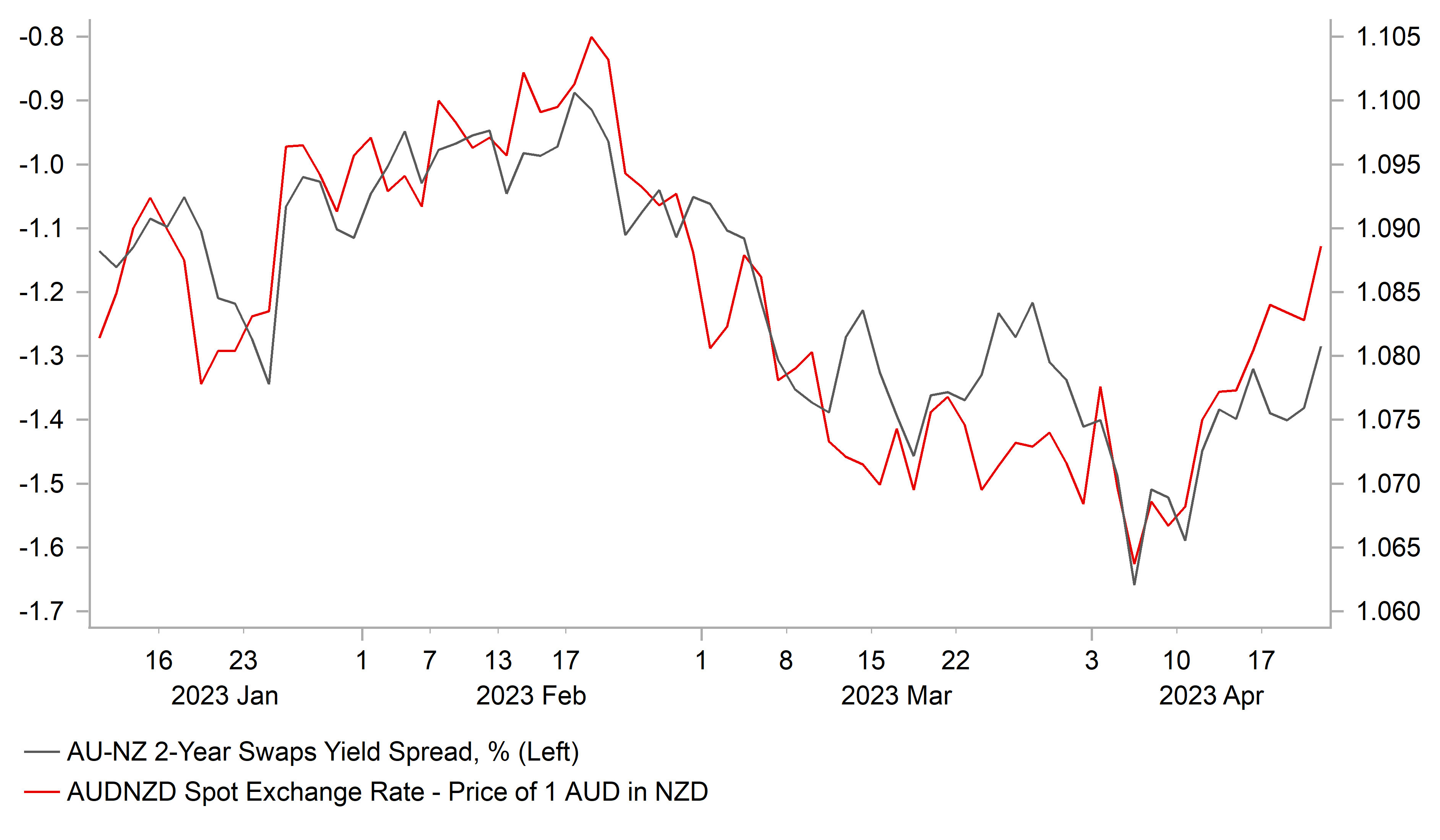 The worst performing G10 currency overnight has been the New Zealand dollar following the release of the latest CPI report from New Zealand. It has resulted in the NZD/USD rate falling back below support from the 200-day moving at around 0.6160, and the AUD/NZD rate has extended its recent advance up to the 1.0900-level. The latest CPI report revealed that the inflation slowed unexpectedly for the second consecutive quarter from 1.4%Q/Q in Q4 of last year to 1.2% in Q1 of this year. It was the slowest quarterly increase in headline inflation since Q1 2021. The annual rate of headline inflation also slowed to 6.7% in Q1 as it moved further below the peak from Q2 of last year at 7.3%. It will be a notable surprise for the RBNZ who had been expecting the annual rate of headline inflation to remain at around 7.3%. The report will give the RBNZ more confidence that inflation peaked at around the turn of the year which increases the likelihood that the RBNZ could pause their rate hike cycle at their next policy meeting on 24th May. The RBNZ has already lifted their policy rate into more restrictive territory at 5.25% after delivering a larger 50bp hike at their last meeting. The impact of past monetary tightening is already becoming more evident with New Zealand’s economy expected to fall into recession this year following on from the –0.6%Q/Q contraction in Q4 of last year. The RBNZ will still be concerned though that inflation remains uncomfortably above their 1-3% target band despite the slowdown in recent quarters, and that domestic (non-tradable) inflation picked up in Q1 to an annual rate of 6.8% in Q1. It still leaves open the possibility that the RBNZ will deliver one final smaller 25bps hike. The New Zealand dollar has been the second worst performing G10 currency this year, and developments overnight will reinforce expectations for further weakness. The AUD/NZD rate has been moving more closely in line with short-term yield spreads, and has been lifted this month by the scaling back of RBNZ rate hike expectations relative to the RBA. There is more room for the RBA’s policy rate to rise further at 3.60% in comparison to the RBNZ’s policy rate at 5.25%.