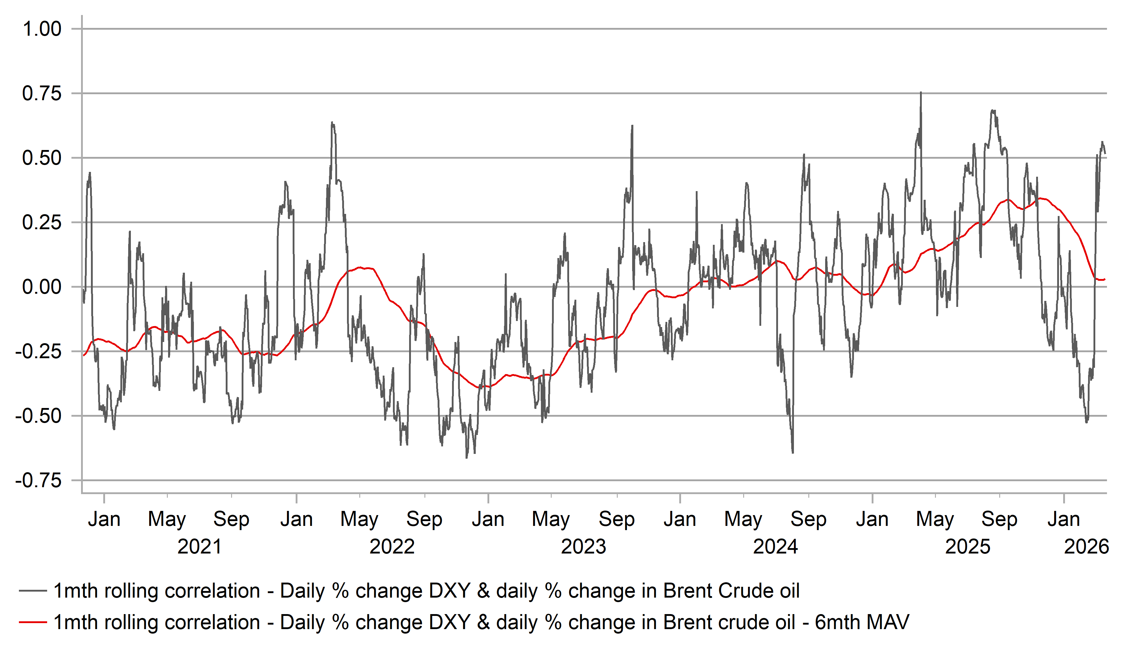 BRENT CRUDE OIL CORRELATION WITH USD HAS STRENGTHENED NOTABLY