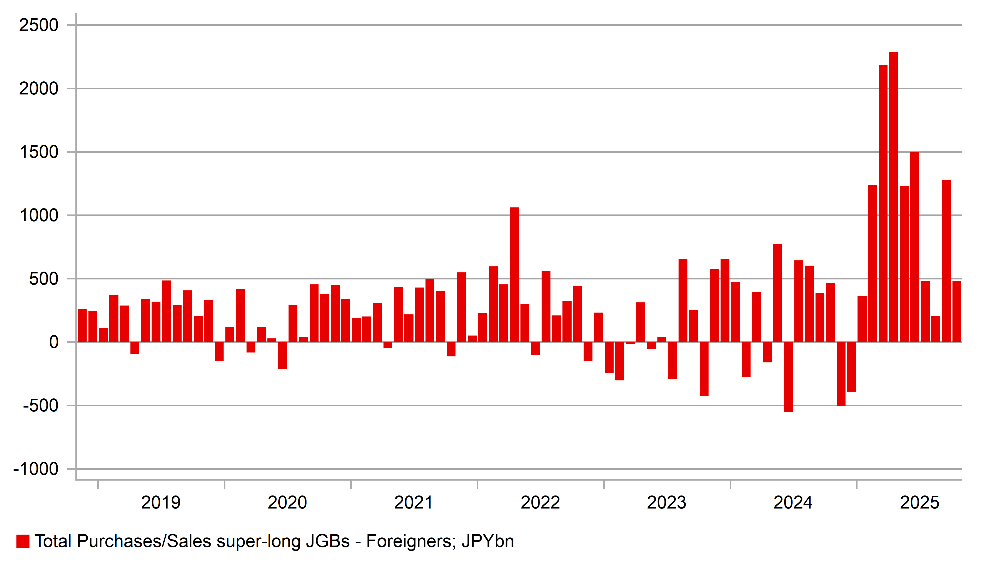 FOREIGN INVESTOR BUYING OF SUPER-LONG JGBS HAVE HELPED SLOW THE YIELD MOVE HIGHER – WILL FOREIGN INVESTORS CONTINUE TO BUY?