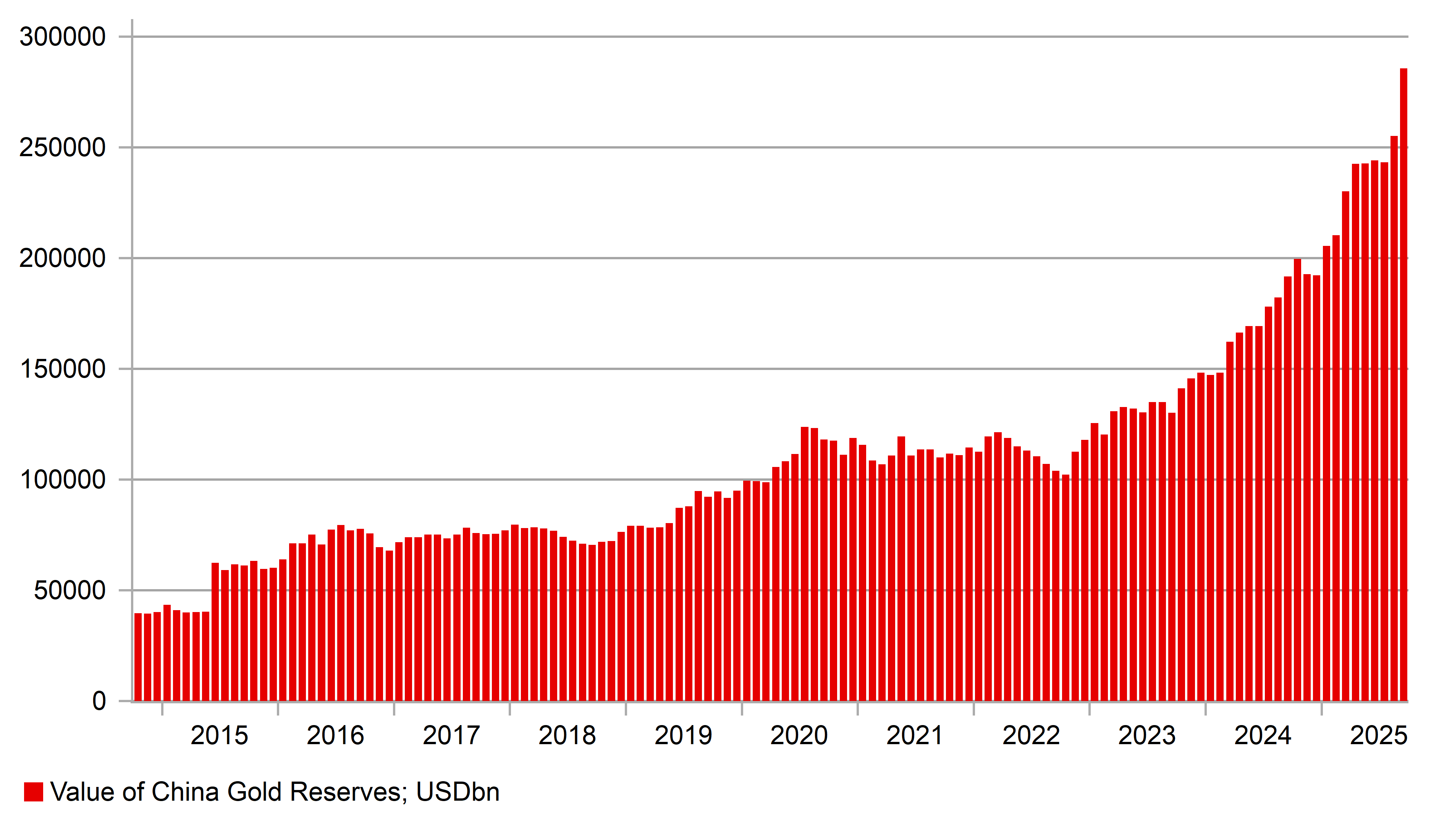 THE VALUE OF CHINA’S GOLD HOLDINGS HAVE SURGED TO CLOSE TO USD 300BN AFTER 20% INCREASE IN VOLUME SINCE START OF 2024