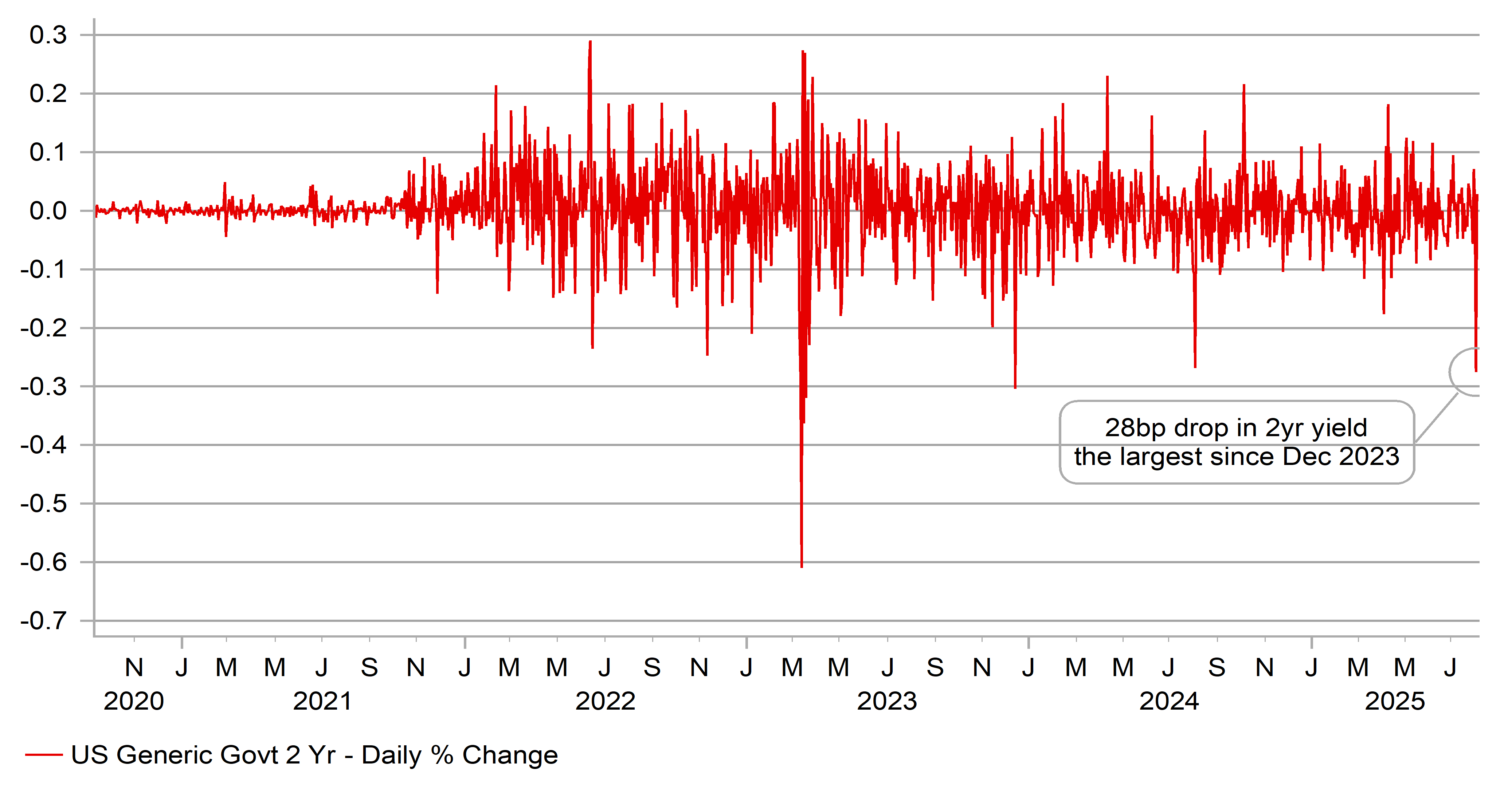 The US dollar plunged on Friday and for good reason – the chance of a Fed rate cut dramatically shifted on Friday and we are now suddenly more in a position of needing data to stop the Fed from cutting rather than needing data to endorse a cut. The 28bp drop in the 2-year UST note yield was 1bp larger than in August 2024, coincidentally that move also triggered by a weaker than expected jobs report. The US dollar was at stronger levels a year ago but nonetheless that weak payrolls print triggered a bad month for the dollar, which weakened 3.8% through to 27th August. The yield drop on Friday was in fact the largest since the day of the FOMC meeting in December 2023 when there was a notable dovish shift from the Fed, signalling the prospect of monetary easing ahead. From the day of the FOMC and the 2-year yield drop, the dollar weakened by 2.8% through to the end of the year.