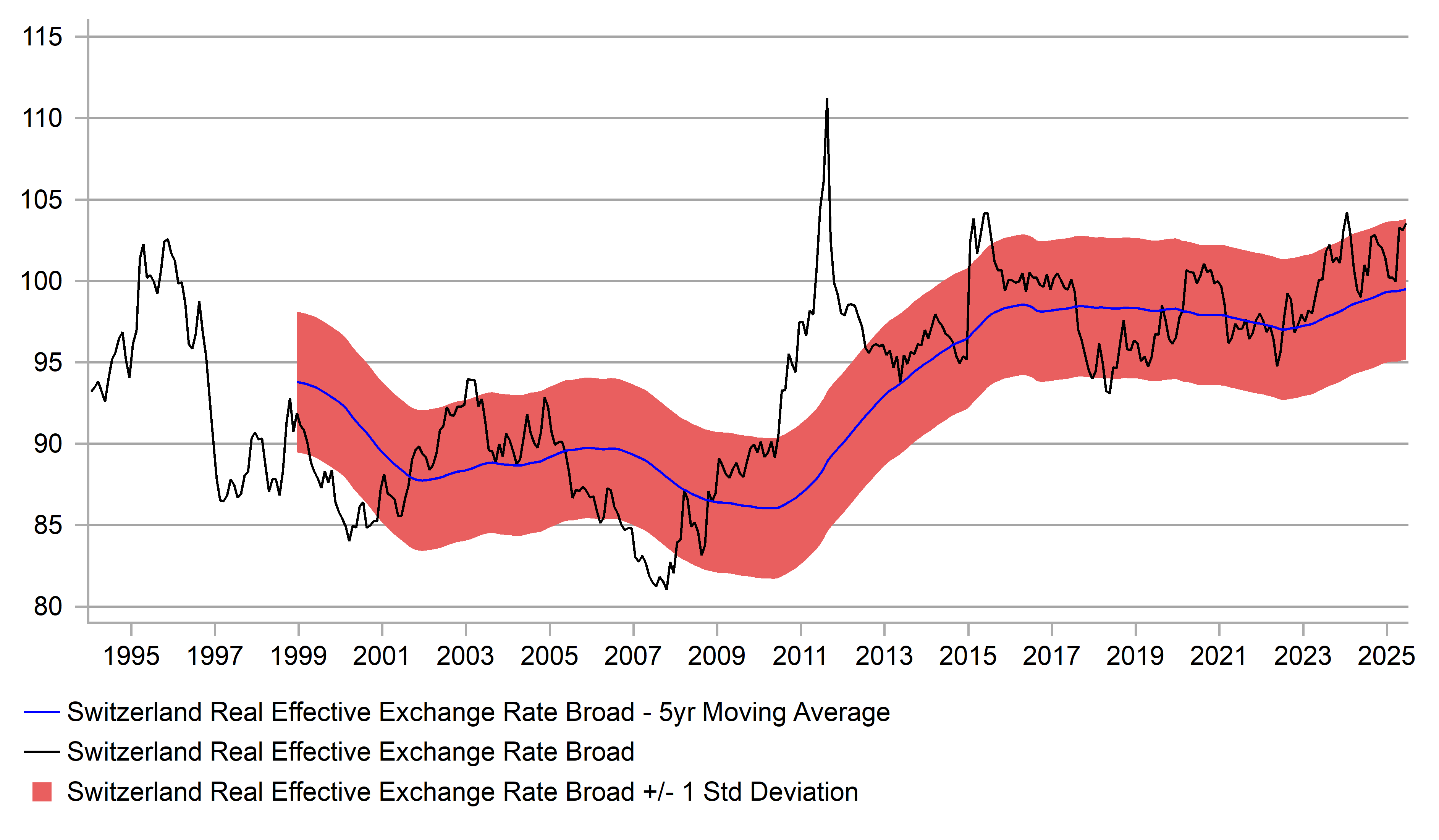 CHF REER CLOSE TO HIGH RECORDED OVER LAST 10YRS