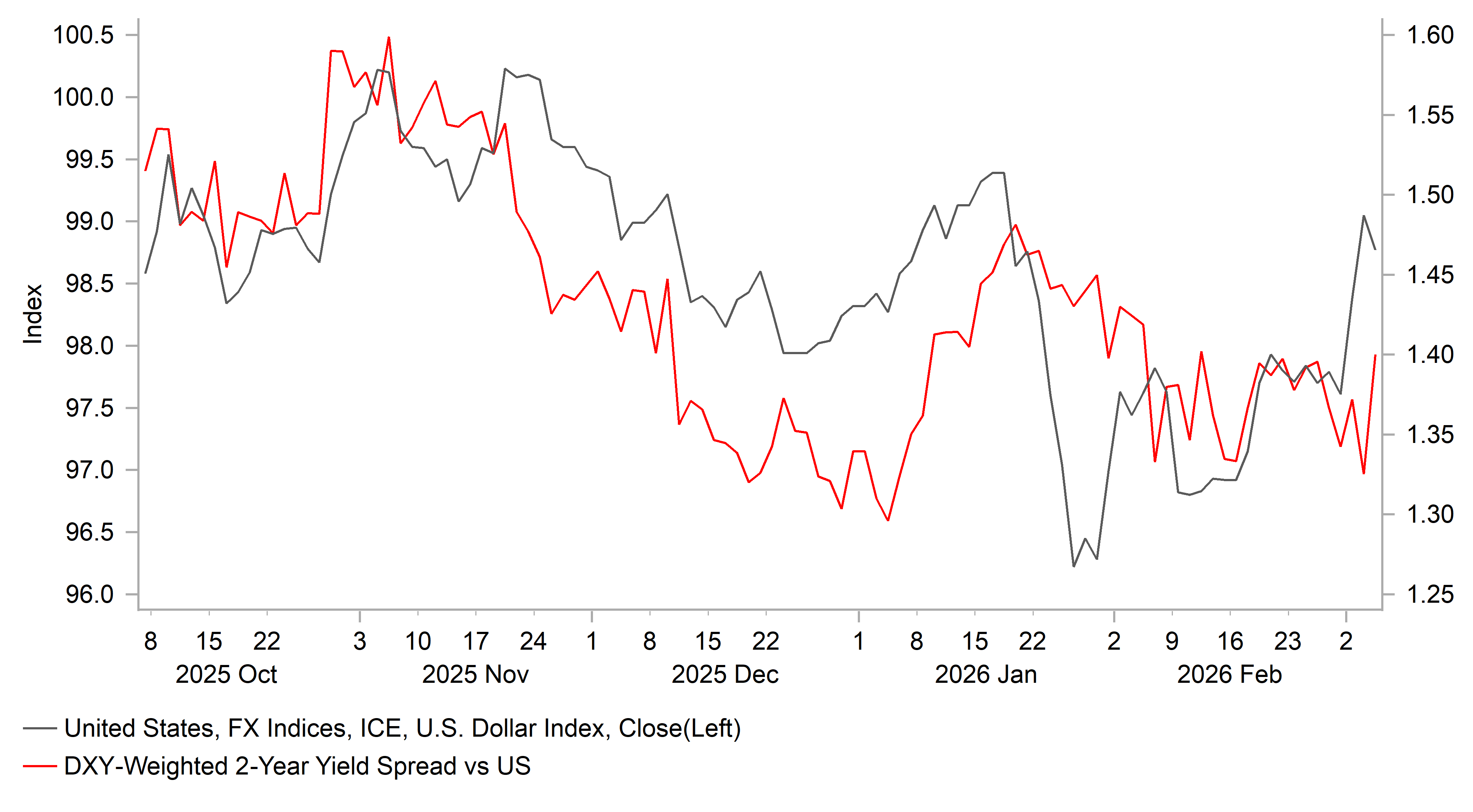 However, the report did indicate that BoJ officials will continue to monitor the implications of developments in the Middle East. Officials view the duration of the conflict as the key variable in assessing the risks to Japan’s economic outlook and the trajectory of interest rates. The BoJ will pay close attention to upside risks stemming from higher oil prices. If crude prices remain elevated amid prolonged tensions in the Middle East, that could push up inflation expectations and reinforce price momentum. It follows comments yesterday from Governor Ueda who expressed concern that Japan’s economy would be hit by higher energy prices. We have been assuming that a more prolonged conflict would make the BoJ become cautious over hiking rates further in the near-term encouraging a weaker yen alongside the negative impact on the yen from the terms of trade shock for Japan’s economy from higher energy prices.