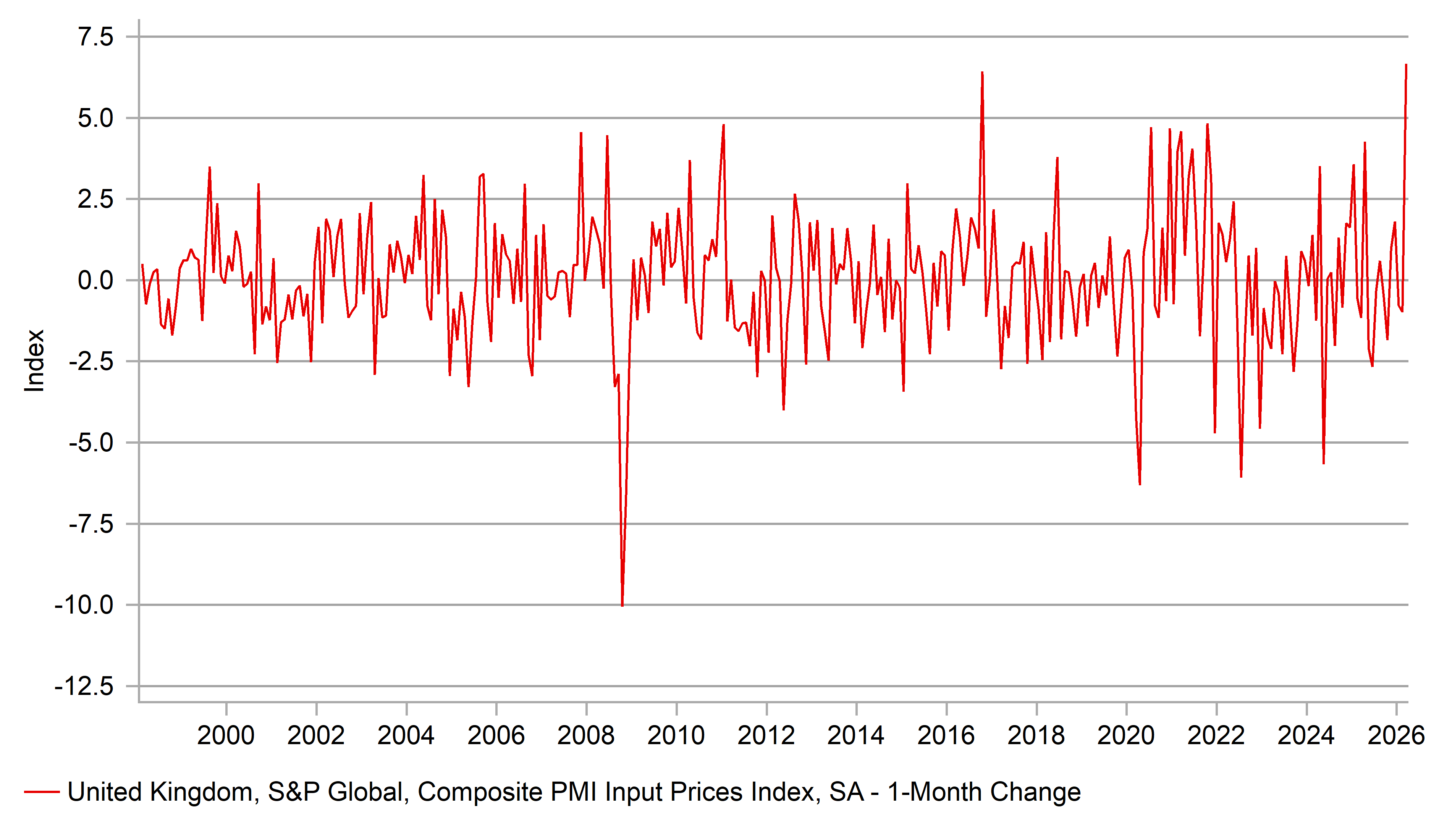 The PMI Service data was released yesterday and the decline recorded was certainly larger than seen in Europe – the final estimate was 0.7ppt below the initial estimate with inflationary risks clearly a key driver in the worsening business sentiment. The PMI Composite Input Price index surged by a record 6.7ppts, surpassing the previous record following the plunge of the pound after the Brexit referendum result in 2016 and hence a larger jump than during the global inflation shock following Russia’s invasion of Ukraine in 2022. With the recent memory of that global inflation shock in the minds of services suppliers, we may well see a faster feed-through in energy-related inflation than what we saw in 2022. Food inflation can also surge quickly on the back of higher energy prices as we saw in 2022. Last week, the UK’s Food & Drink Federation updated its inflation forecasts and now expects a year-end food inflation rate of between 9%-10%. Previously it expected a rate of 3.2%. Those forecasts are based on the assumption of the Strait of Hormuz reopening in the next few weeks and energy production returning to pre-conflict levels within the next year.