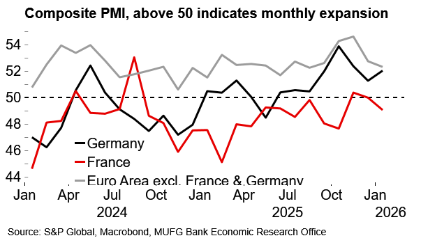 The PMIs suggest weaker momentum outside of Germany at the start of the year