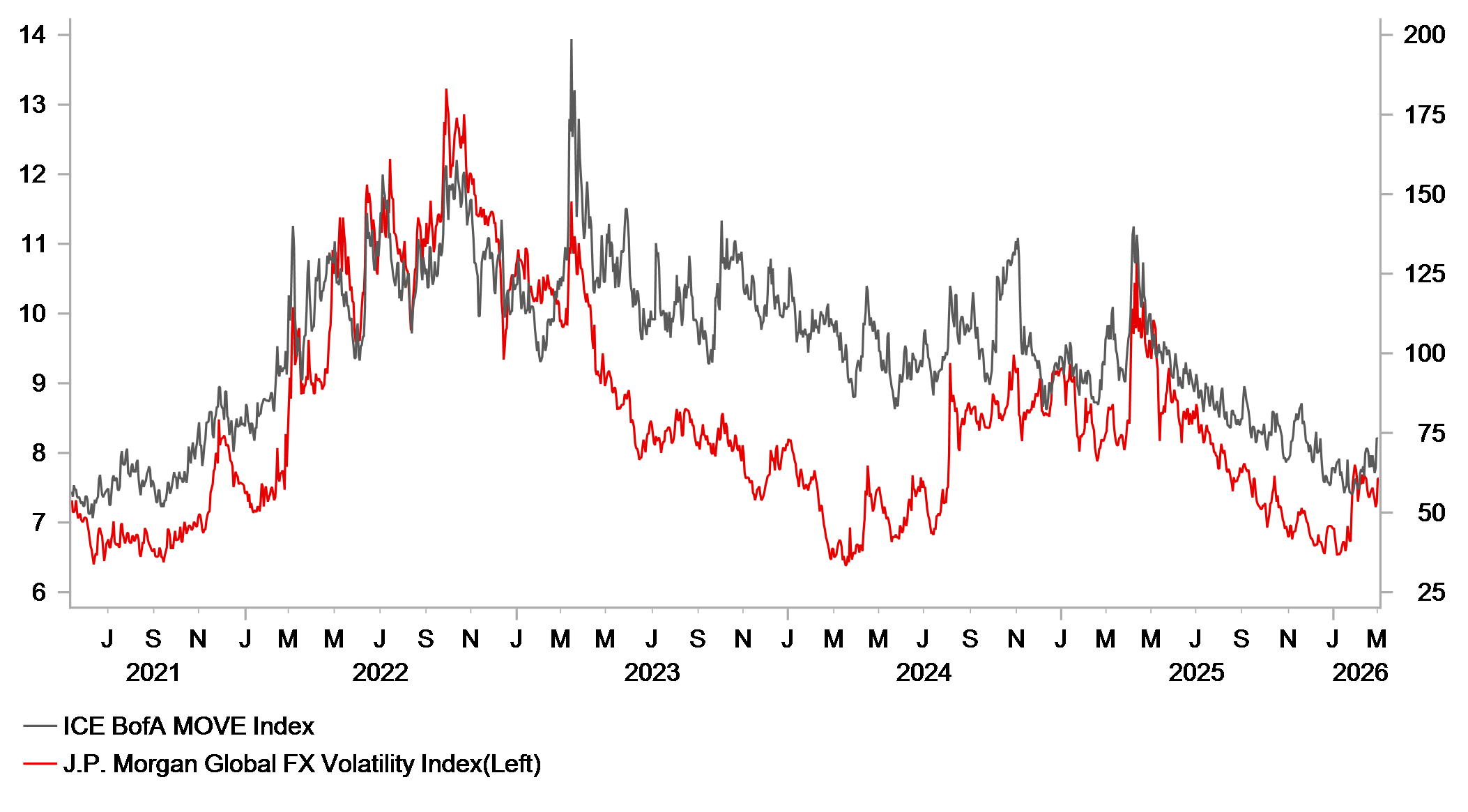 However, we expect the USD rebound to prove short‑lived. Our latest forecasts (click here) are based on the assumption that Operation “Epic Fury” lasts weeks rather than months. If this proves correct, USD strength is likely to peak in the near term before reversing from Q2 onwards. We do not expect the Fed to respond with rate hikes as it did in 2022, leaving the foundations for a sustained USD rebound in 2026 far less robust. Provided energy prices begin to ease, we still see scope for the Fed to cut rates in the second half of the year. Furthermore, recent developments at the start of this year have highlighted that US policy uncertainty is set to remain elevated and a headwind for USD performance.