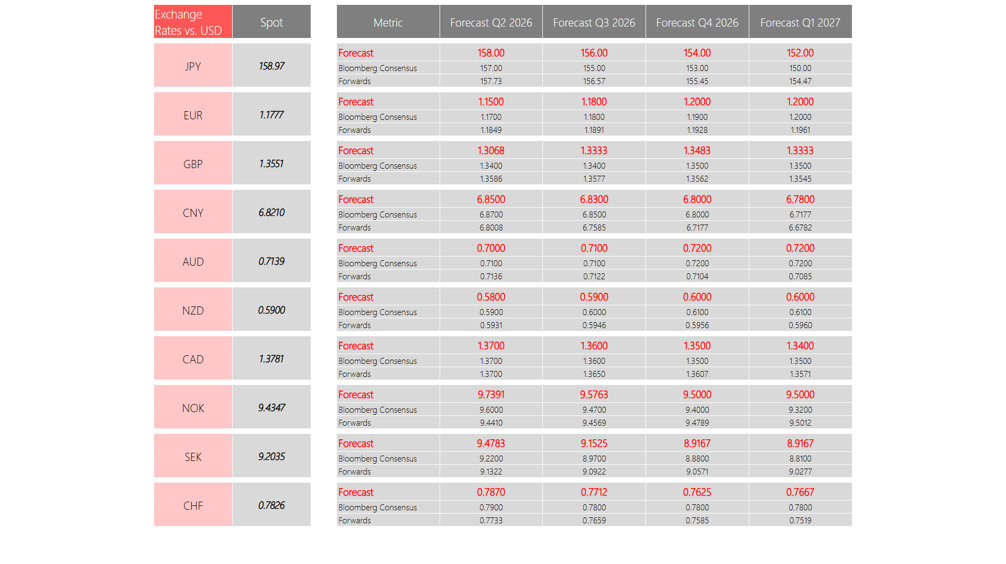 Source: Bloomberg, Macrobond & MUFG Research (GMR) as of 2026; Spot Rates 15th April 2026