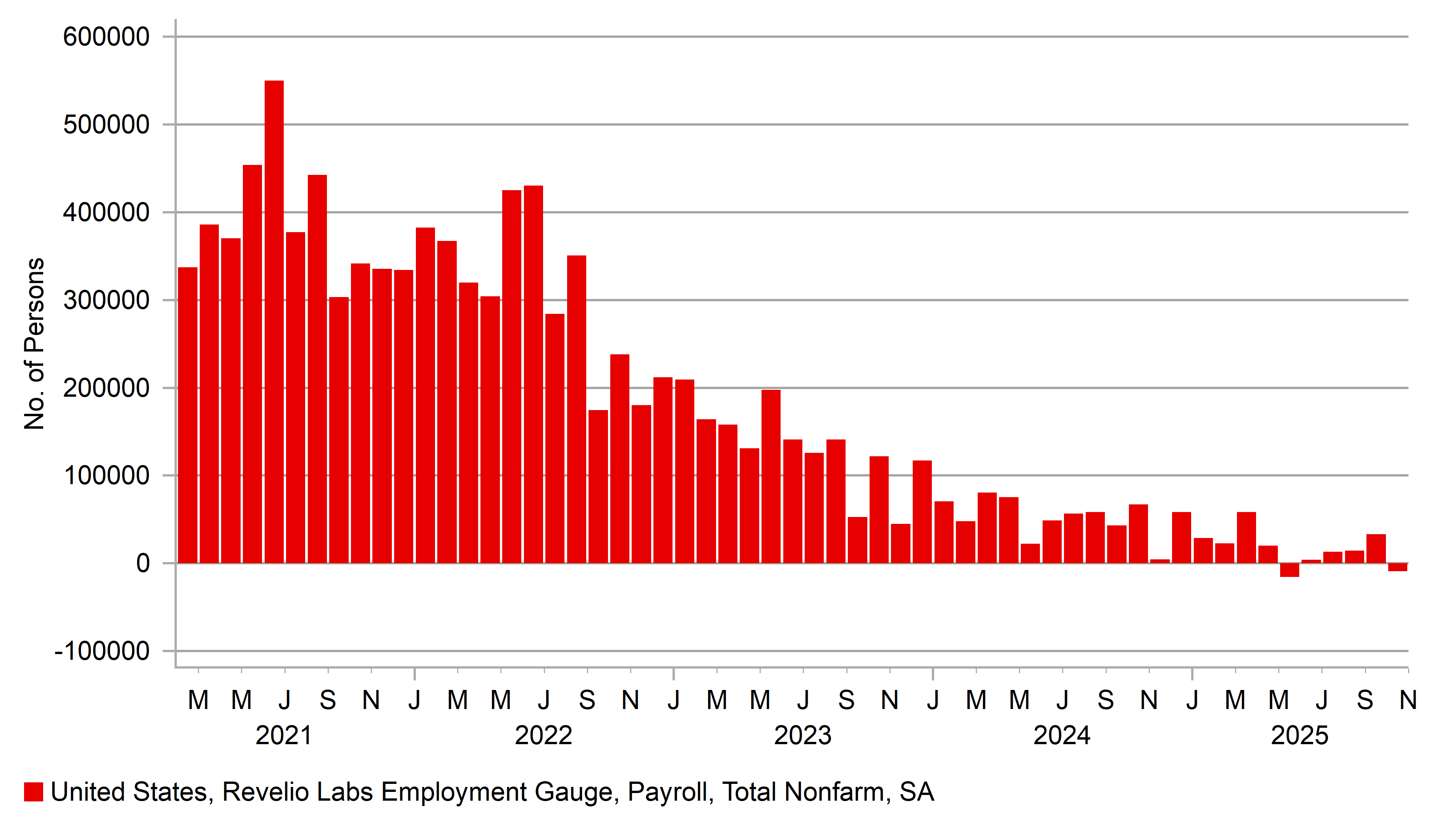 The 2-year UST bond fell 8bps yesterday, primarily on the back of the Challenger Job Cut Announcements data that revealed job announcement cuts of 153k in October – that was the largest October increase since 2003. On a year-to-date basis, Challenger data shows close to 1.1mn job cuts have been announced in 2025, which when 2020 is excluded is the largest over the Jan-Oct period of any year since 2009 during the Global Financial Crisis. Furthermore, when the data is viewed excluding the impact of DOGE and government sector job losses, it paints an even worse picture. Excluding government job cut announcements, the total surged to 145k in October, by far the worst total of any month since 2009 during the GFC when 2020 is excluded. What else can we garner from private sector data? The ISM employment reading remain below the key 50-level for manufacturing and services but the contraction has been diminishing. Indeed job advertisements data also indicates a weakening trend. Looking at the data on a weekly basis, the 4-week average hit a new low in October, hitting levels not seen since 2020. Revelio Labs – another private sector employment data source (using HR and payroll data) – revealed a 9.1k drop in employment in October, down from a 33k gain in September. It was the second drop in 2025 (other was May) although this data set only began in Feb 2021 so there is not much historical context. ADP did reveal a rebound in October (42k vs -29k in Sept) so while the data is somewhat mixed, the private sector data overall does clearly still point to continued weakness in employment and a pick-up in firing. Once the NFP data is released after this government shutdown ends, we see it as more likely the official data will continue to reveal a weakening trend in jobs growth.