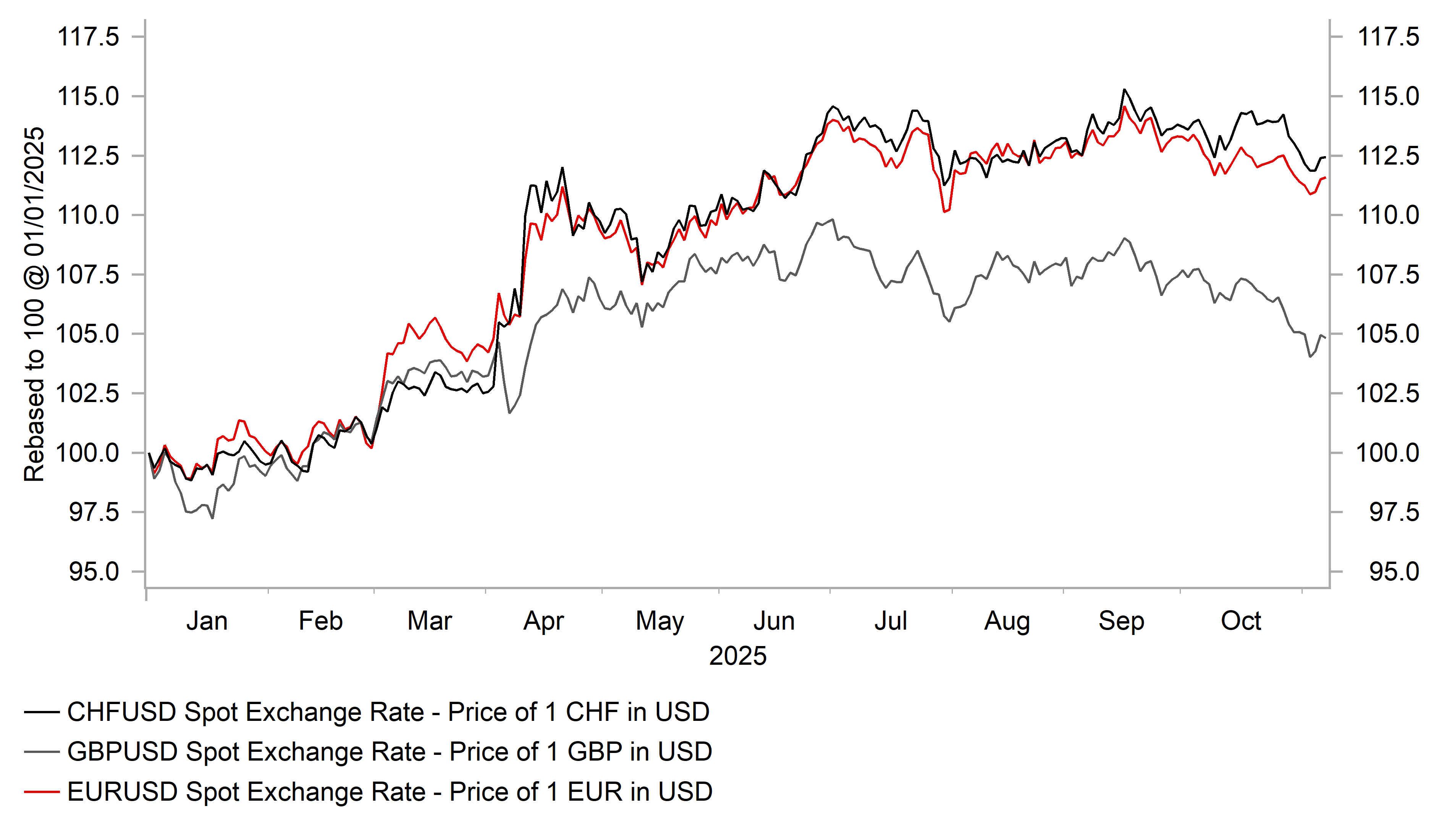 Source: Bloomberg, 14.00 GMT, 7th November 2025 (Weekly % Change vs. USD)