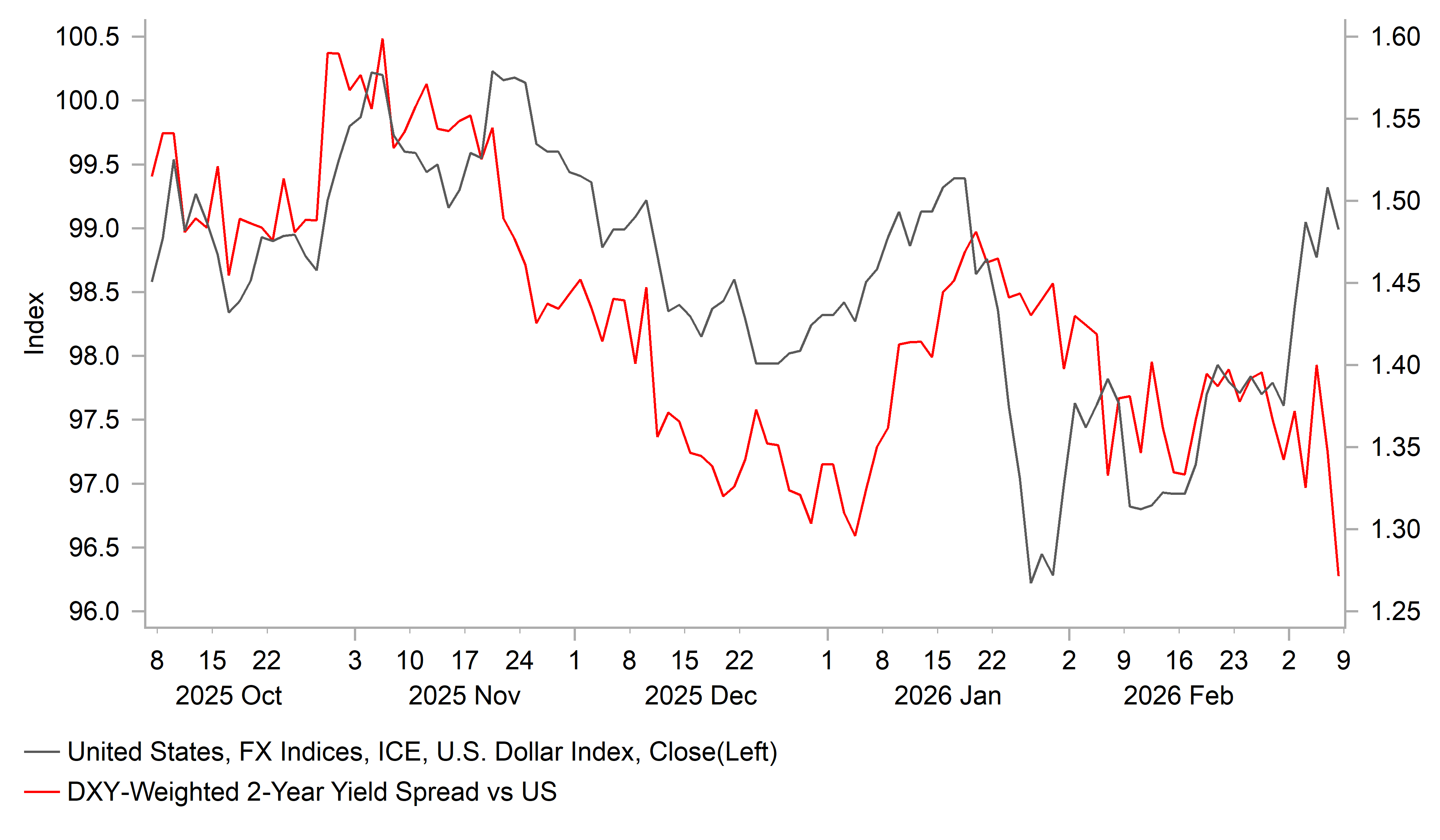 The US dollar moves have been relatively orderly so far since the start of the conflict in the Middle East. That could well be about to change with the surge in crude oil prices – Brent hitting USD 119.50 before retracing on possible IEA/G7 emergency supply releases. Equity markets in Europe and Asia have been hit more severely and that could well spread to US markets as global investors reassess the corporate earnings outlook. The economic hit to growth will become increasingly more severe the longer the conflict lasts with the IMF estimating a 0.4ppt increase in global inflation for every USD 10 p/bl increase in crude oil prices. Growth will also be hit by the shift in market yields. The inflation risk has seen a dramatic shift in short-term rate expectations in Europe that will weigh on growth expectations and risk assets. US dollar gains are set to extend further over the short-term. Our analysis of past energy price shocks indicates EUR/USD should be lower based on the 50% jump in crude oil prices and the near 100% jump in TTF natural gas.