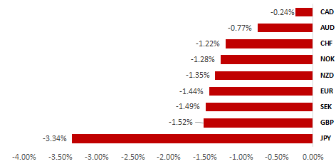 HUGE JPY UNDERPERFORMANCE AS DOLLAR GAINS ACROSS G10