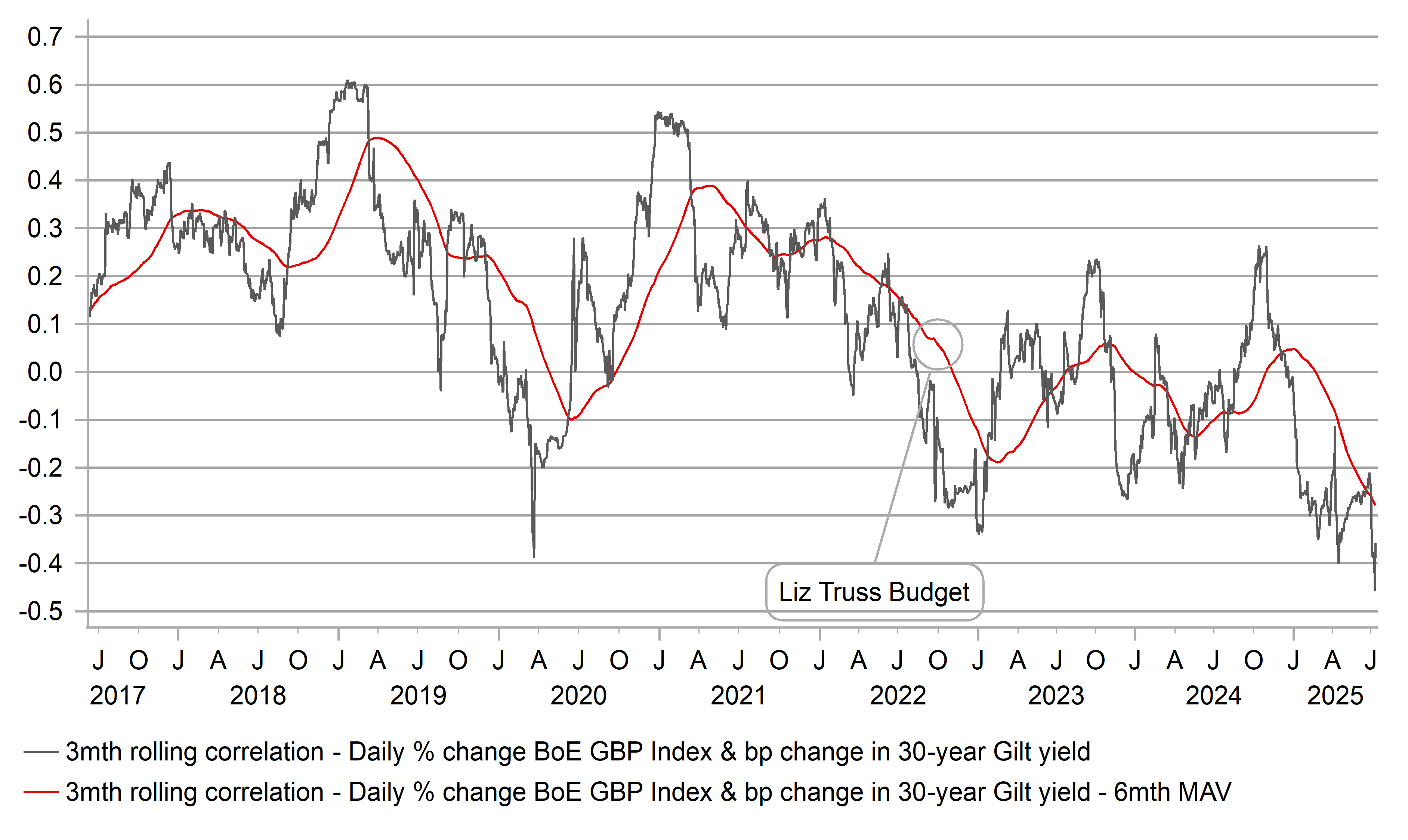GBP MORE NEGATIVELY CORRELATED TO GILT YIELDS