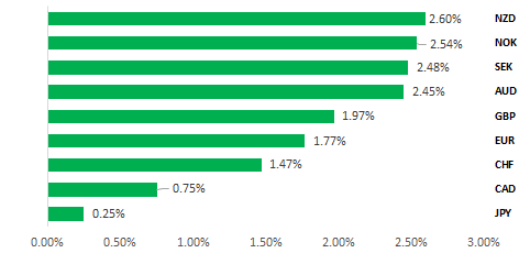 Source: Bloomberg, close on 10th April 2026 (Weekly % Change vs. USD)