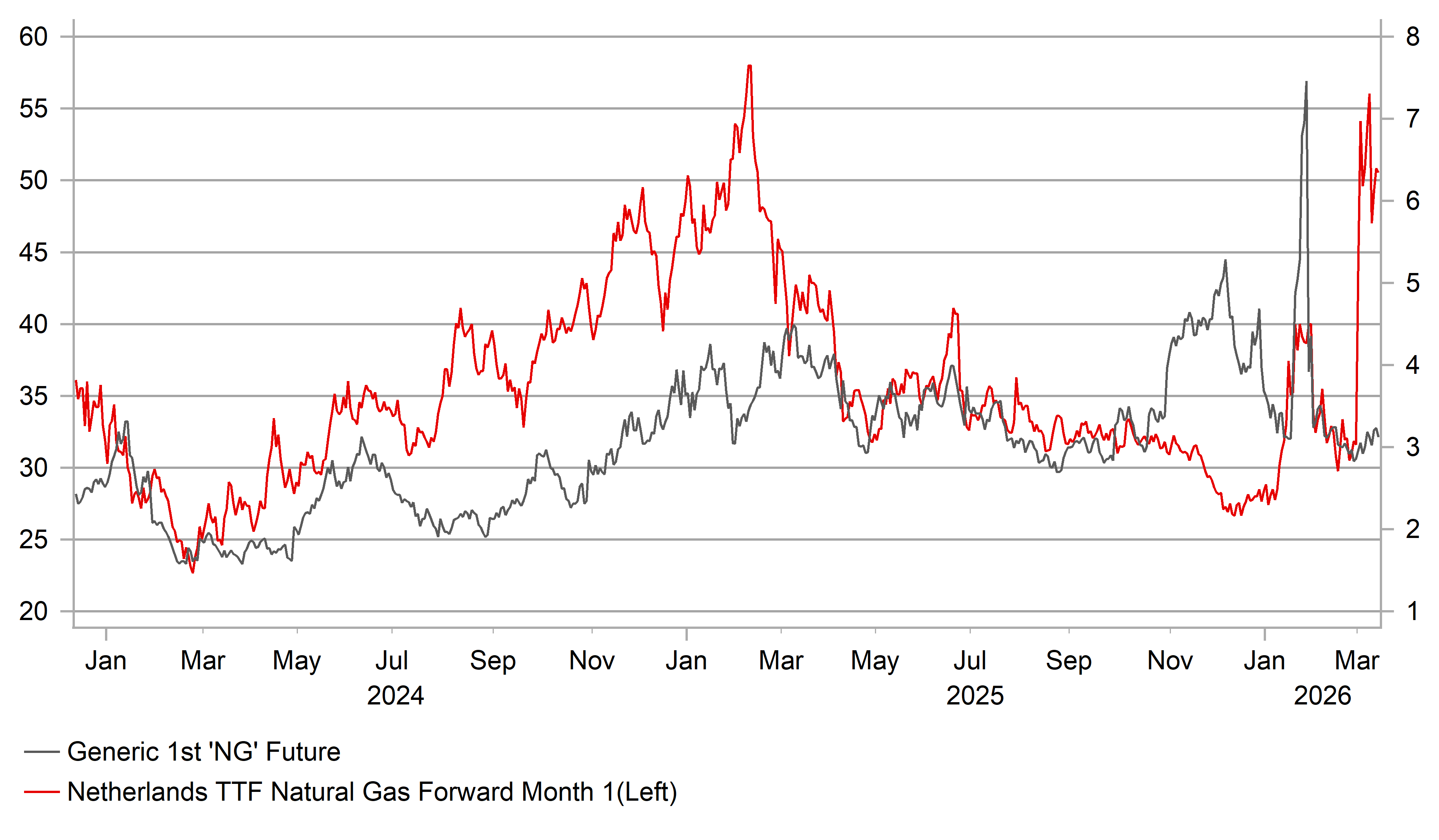 The BoJ and ECB are now expected to be the most active major central banks in tightening policy. While expectations for BoJ rate hikes have not changed significantly in response to the energy price shock, the euro‑zone rates market has shifted sharply, with around 42bps of ECB hikes now priced in by year end, compared with expectations of a possible additional cut before the shock. This repricing has been supported by a series of hawkish comments from ECB officials. Executive Board member Isabel Schnabel has urged policymakers to remain “vigilant” and closely monitor the persistence of the energy‑price shock. Bundesbank President Joachim Nagel stated that “if it becomes apparent that the current energy‑price increases will translate into broad consumer‑price inflation in the medium term, the Governing Council of the ECB will act decisively in a timely manner,” although he continues to back a “wait‑and‑see approach” for now. Governing Council member Peter Kazimir went even further, warning that “a reaction by the ECB is potentially closer than many people think. I don’t want to speculate about April or June. But we will be ready to act if needed.”