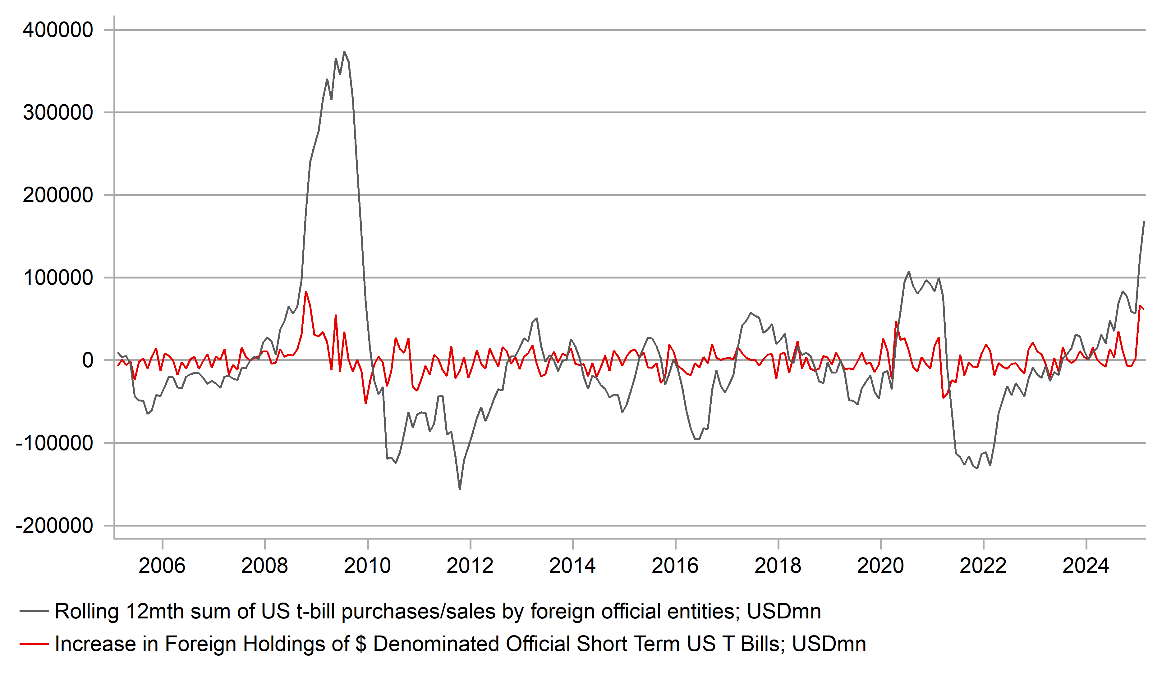 FOREIGN OFFICIAL ENTITIES PURCHASES OF US T-BILLS REACHES THE HIGHEST SINCE THE GFC