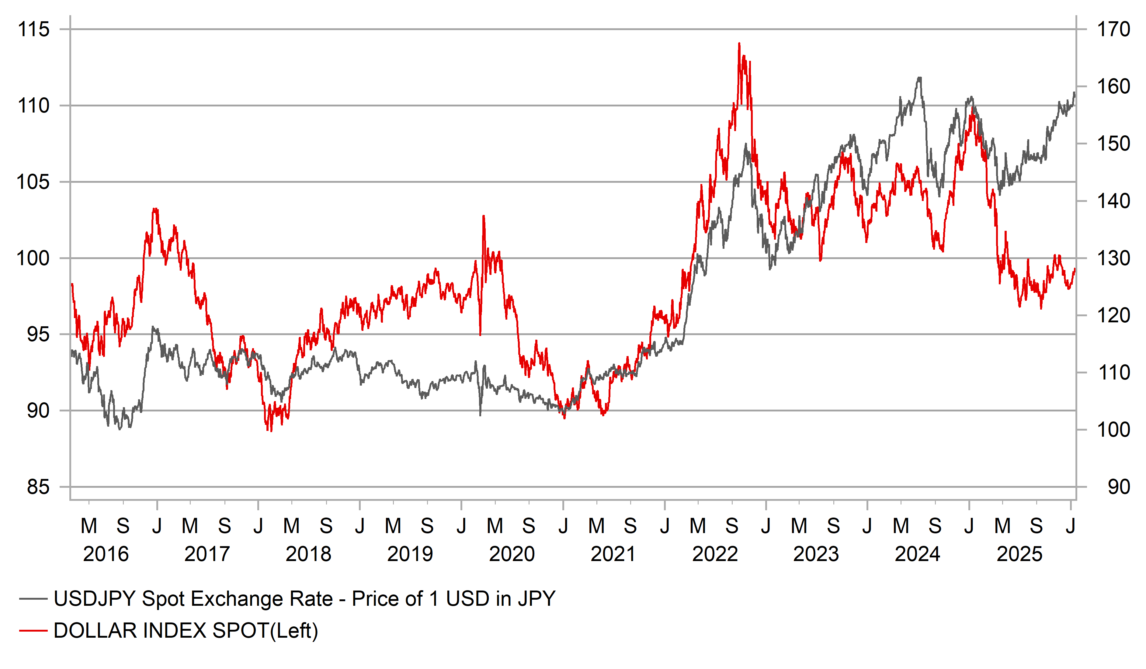 USD/JPY DIVERGENCE WITH DXY UNDERLINES SUSTAINED YEN UNDERPERFORMANCE