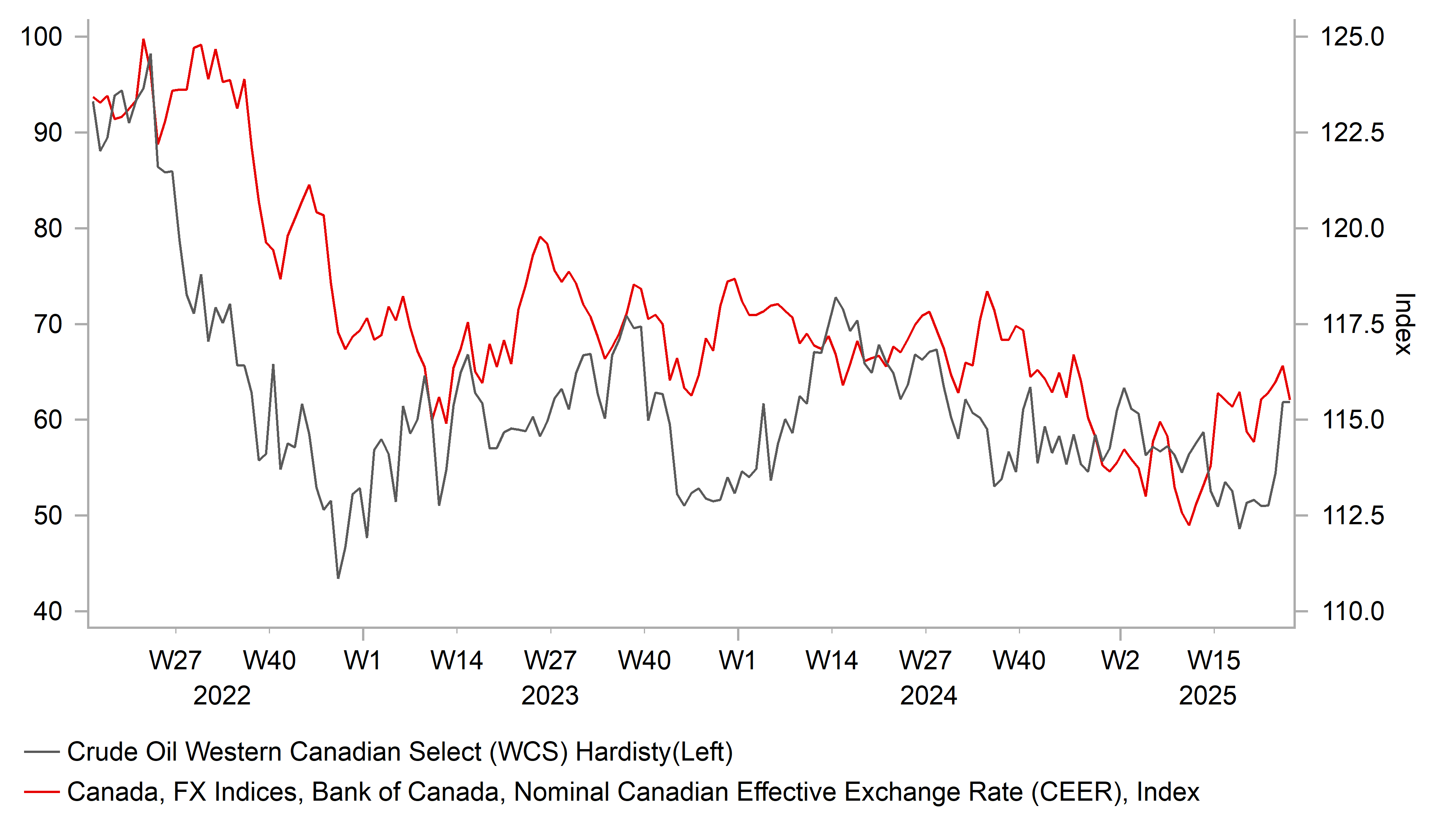 The BoC is likely to have more clarity over trade policy at the 30th July policy meeting. At the recent G7 summit, US President Trump and Canadian Prime Minister Carney committed to pursue a deal within the next month aimed at building a “new economic and security relationship”. Potential disruption for Canada from the looming 9th July “reciprocal tariff” deadline should be more limited given the current lower tariff rate of 10% should remain the same even if a deal is not reached and/or the deadline extended. Canada has warned though that it may impose counter tariffs by 21st July if no deal is reached. Overall, it suggests that risks are more tilted to the upside for Canada’s economy and the CAD from ongoing trade negotiations as it more likely tariffs will be lowered rather than raised further. The implications for the BoC’s policy decision in July from a trade deal would be less clear cut. On the one hand a trade deal would help to ease downside risks to growth going forward but on the other hand it would ease upside risks to inflation in the near-term. The BoC could take advantage of less inflation risk to deliver further easing to provide more support for growth.