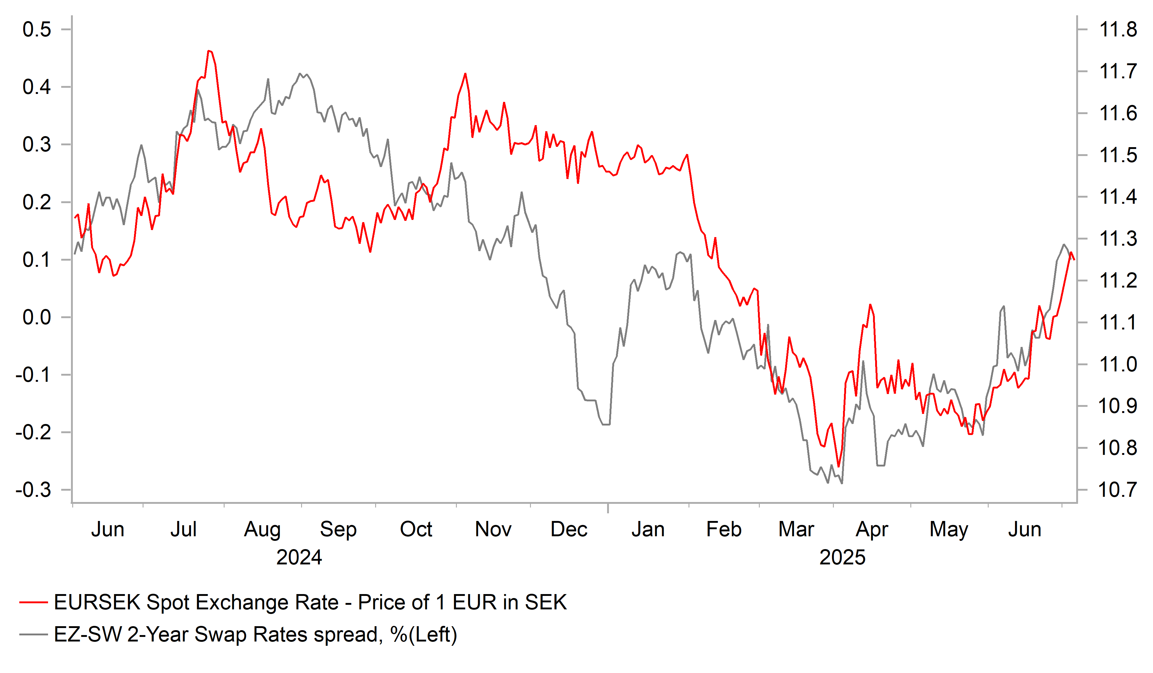 EUR/SEK TIGHTLY LINKED TO YIELD SPREADS IN 2025
