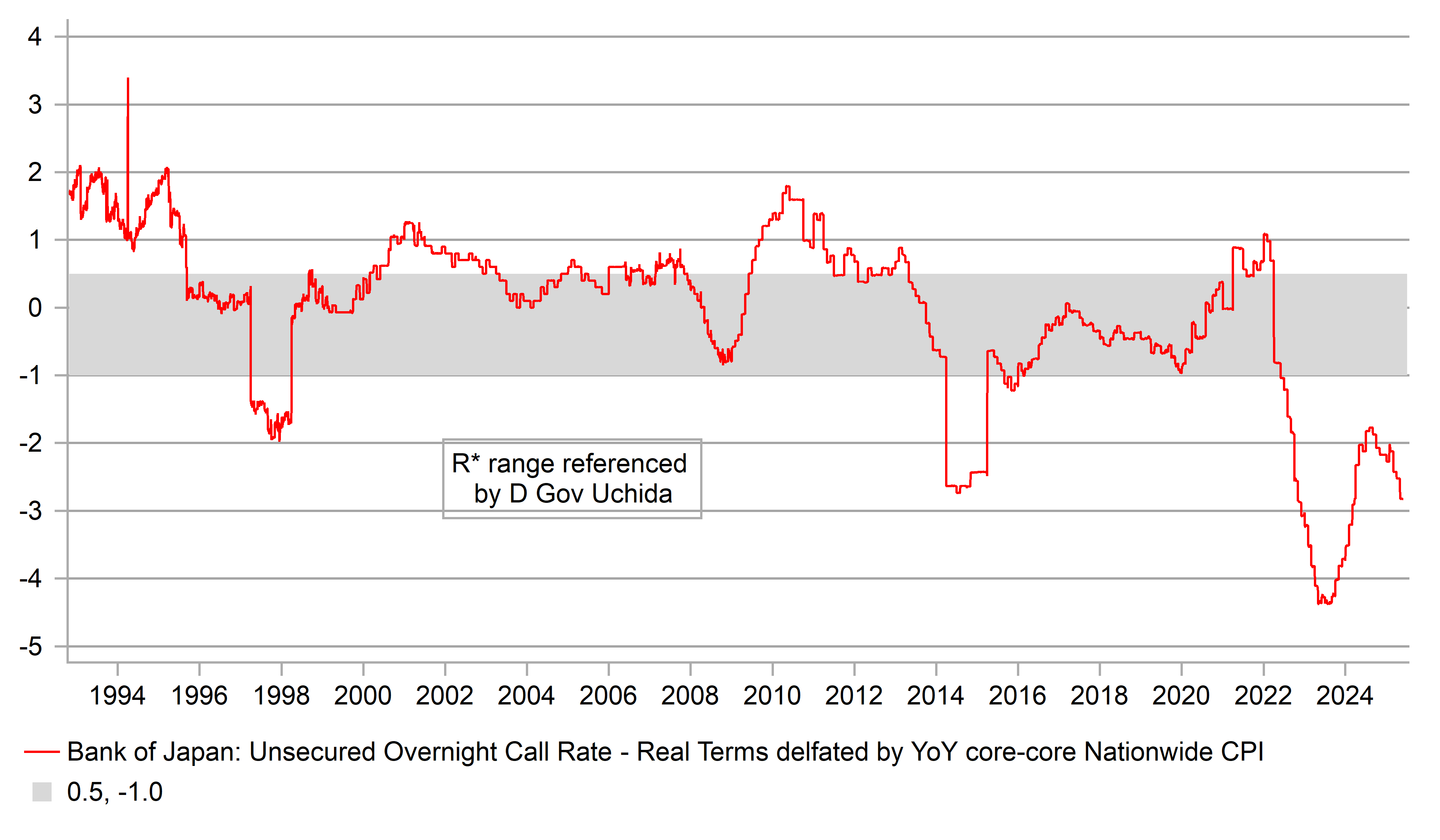 BOJ POLICY RATE IN REAL TERMS IS DECLINING AGAIN