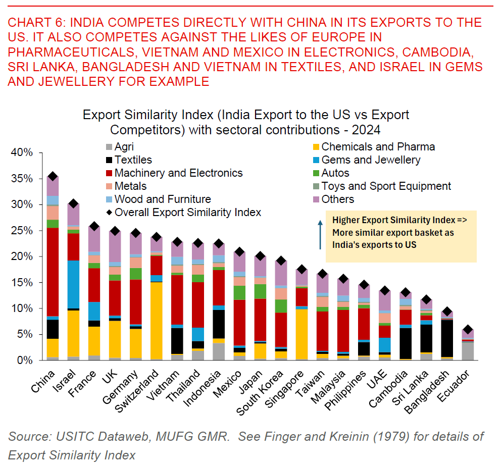 Nonetheless, the key for India’s outlook as well is that the chance for India to get a much better rate relative to its many export competitors across a whole range of product categories as illustrated above is likely much lower.