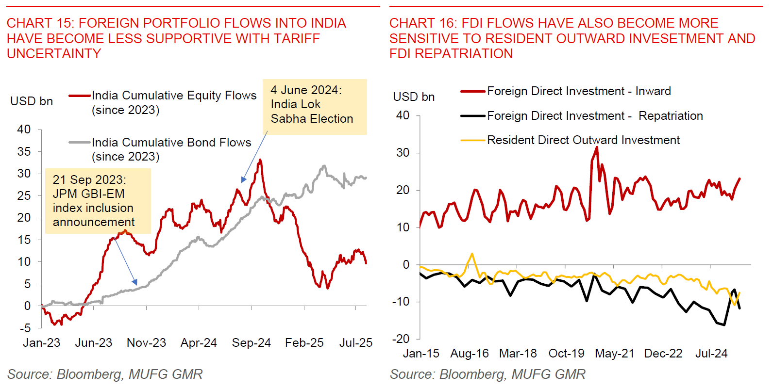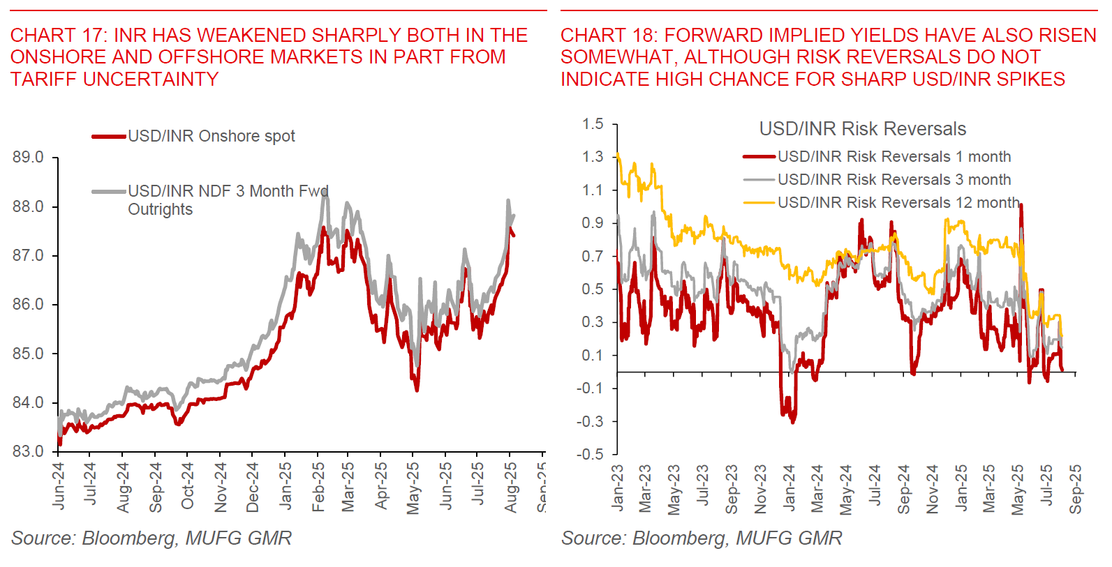 We see these tariff developments as being an important negative for India and the Indian Rupee, even as we acknowledge mitigating factors such as the more domestic nature of India’s economy, and also continued tariff exemptions on the electronics and pharmaceutical sectors.
