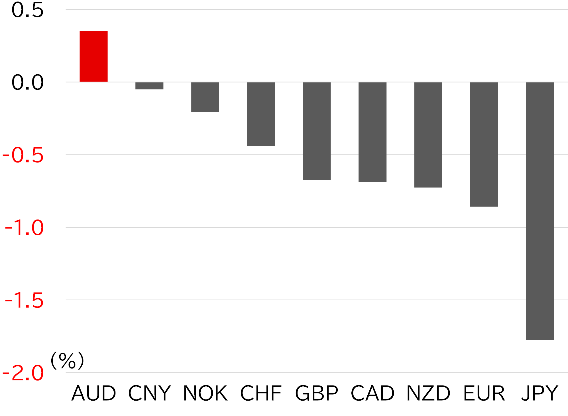 The USD/JPY opened this week near its recent low at 144.49. Dollar buying gained momentum after US President Donald Trump said he would impose an additional 10% tariff on countries siding with BRICS policies that go against US interests. Yen selling accelerated after the release of a letter indicating that tariffs on Japanese products would be raised to 25%, driving the USD/JPY gradually higher. On 9 July, the USD/JPY rose to 147.19, the highest level since 23 June. The dollar rally then ran its course, and the pair pulled back to above 145.50 during Tokyo hours on 10 July. However, with yen selling still dominant, the pair did not extend losses and soon recovered back above 146. On 11 July, the yen was briefly bought on risk aversion after President Trump announced a 35% tariff on Canadian goods, but the pair reversed as it became clear that USMCA products would remain exempt. This triggered renewed yen selling led by cross-yen pairs, and the USD/JPY had climbed to around 147 as of this writing (Figure 1). This week, the dollar was generally strong across the board. The Australian dollar, supported by the RBA's decision to keep rates on hold despite market expectations for a cut, showed relative strength and resisted the dollar rally (Figure 2).