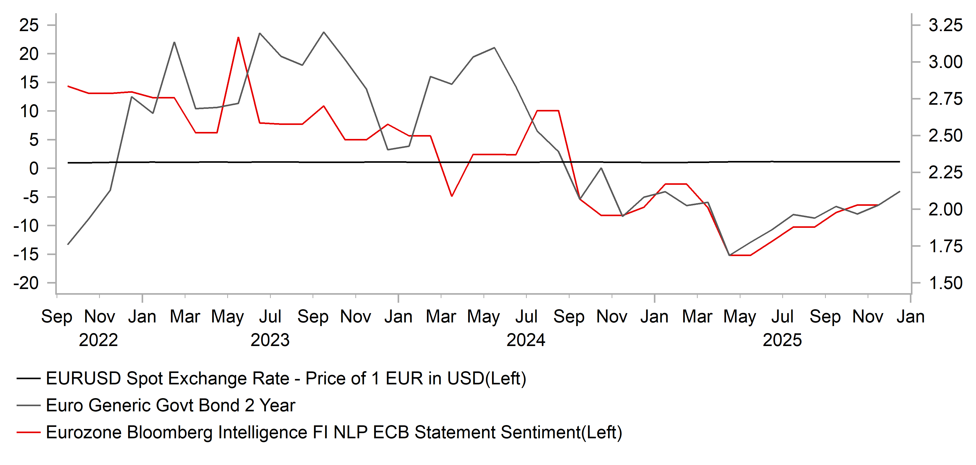 ECB HAWK‑DOVE SCORE VS. 2‑YEAR EURO GOVT BOND