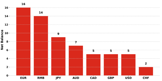 NET CHANGE IN FX RESERVE EXPECTATIONS BY CURRENCY (12–24 MTHS)